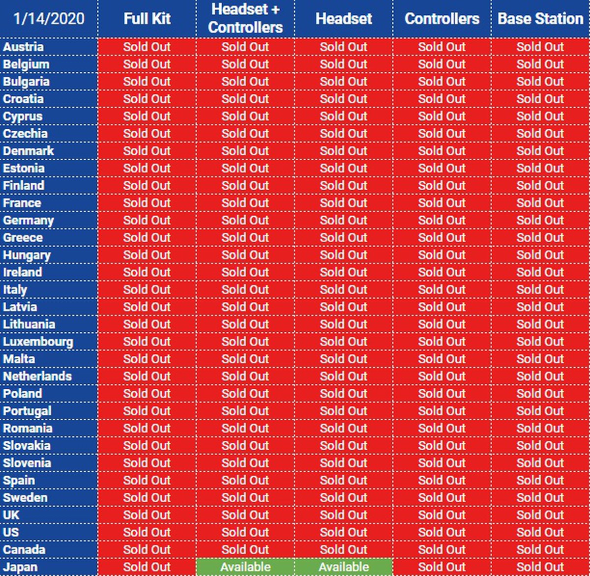 Valve Index продается пятью наборами: можно купить только гарнитуру, только контроллеры, только базовую станцию, гарнитуру с контроллерами или все вместе. Практически во всем мире недоступны вообще все перечисленные наборы.