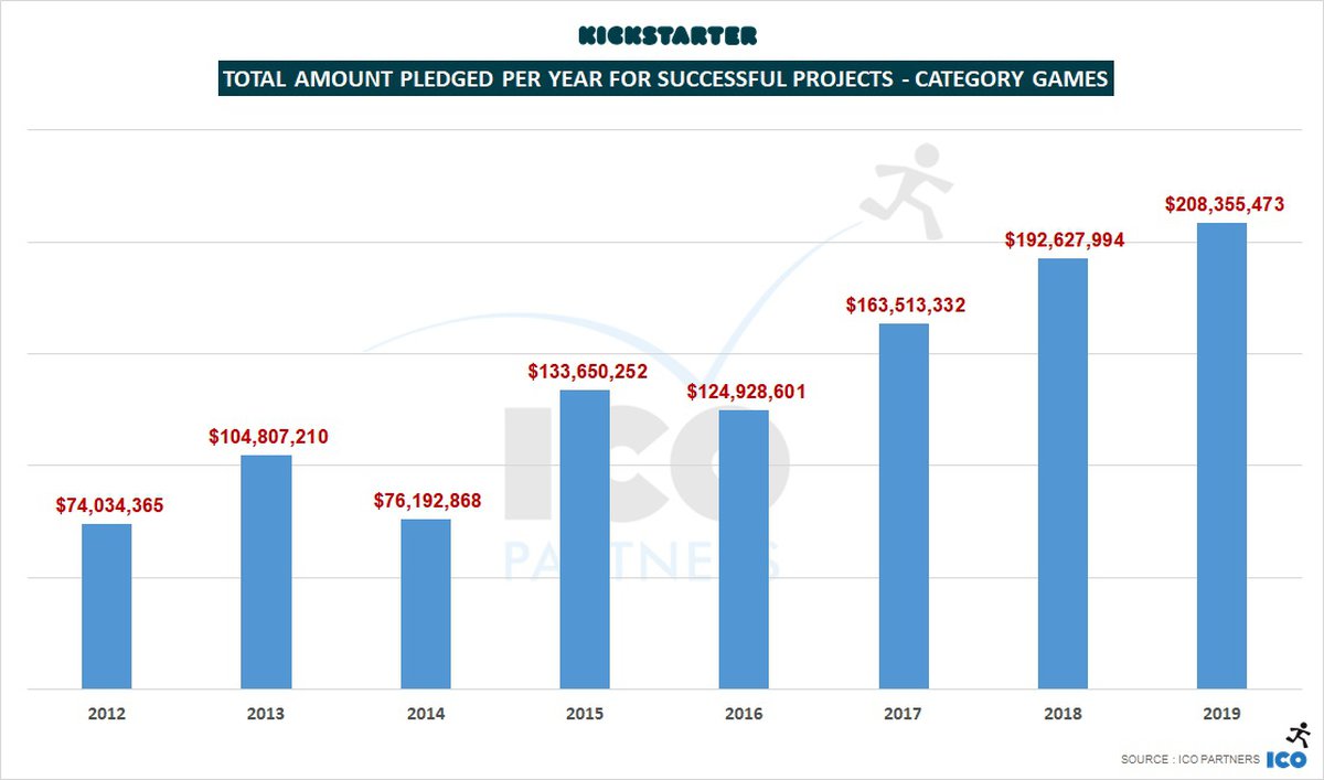 За 2019 год, подсчитали аналитики ICO Partners, пользователи Kickstarter вложили в краудфандинговые кампании игр $208.355 миллиона. Это новый рекорд: по сравнению с 2018 годом играм удалось привлечь на $16 миллионов больше.