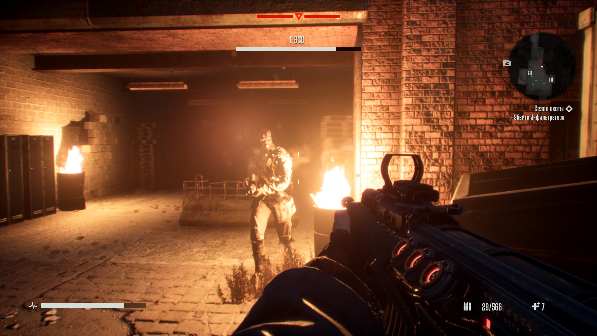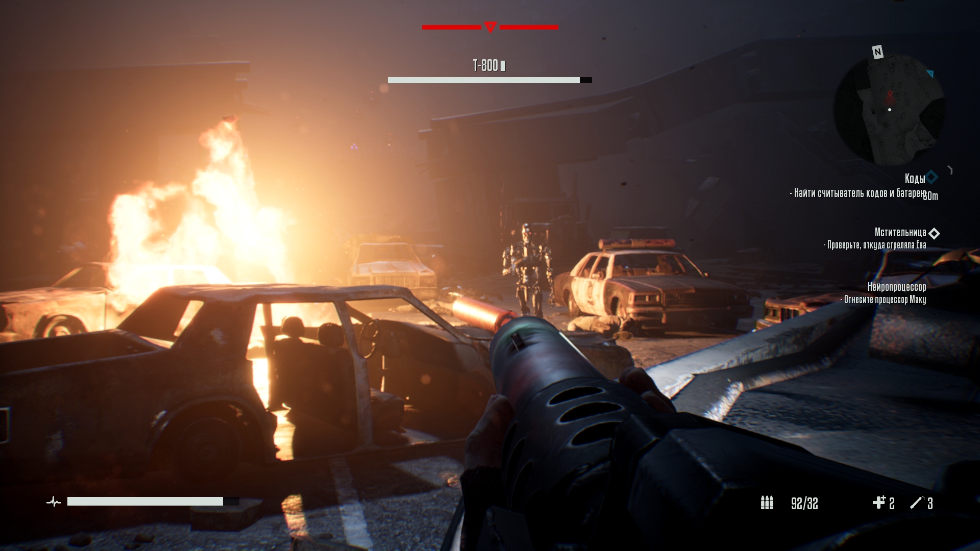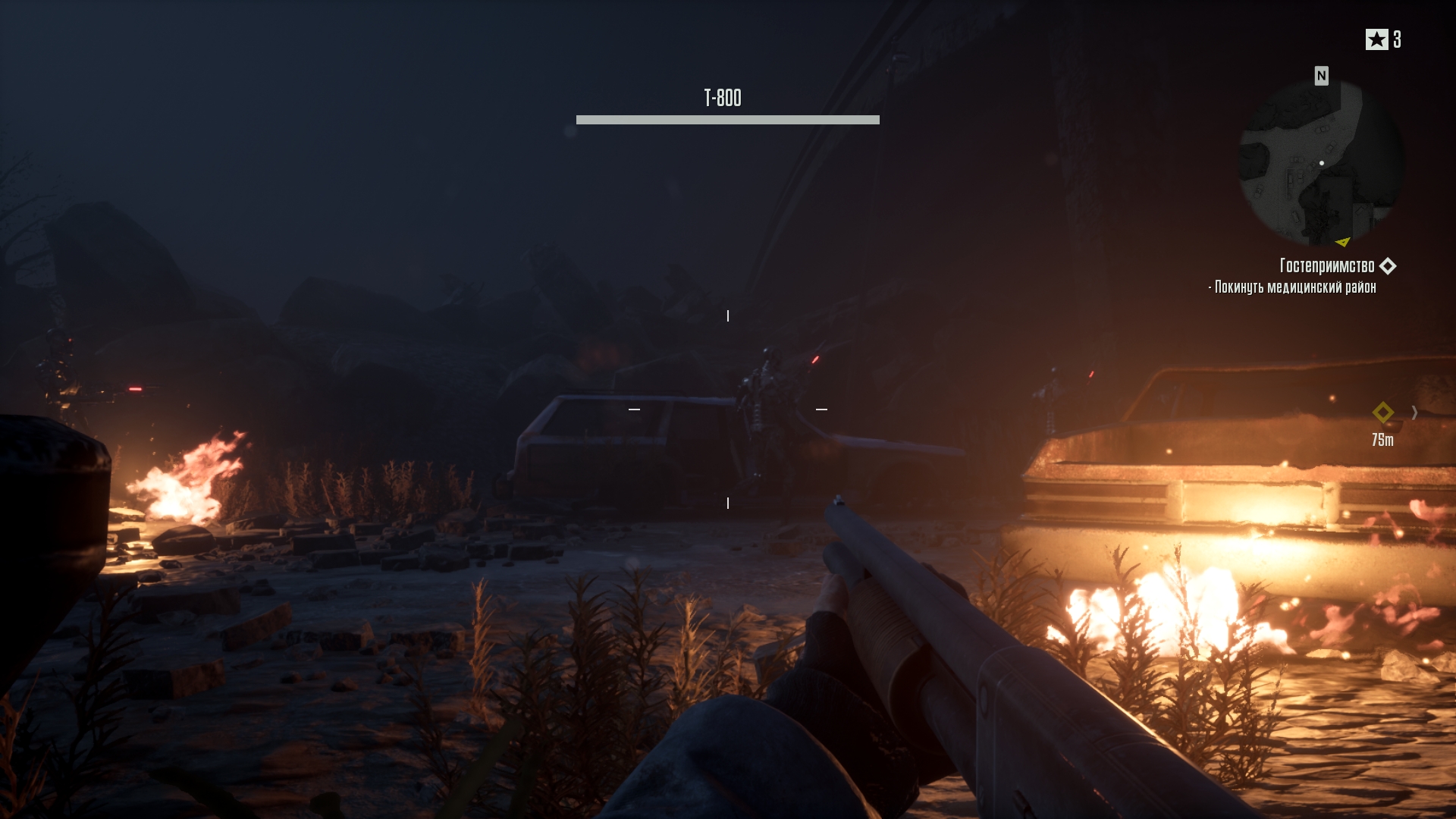 Упс, я совершенно забыл описать сам игровой процесс. В принципе, тут всё скромно. Обычный шутер, с сложностью в убийствах Терминаторов и сюжет с побочными заданиями. Есть система крафтинга, в котором можно создать как ловушки, приманки, так и аптечки с патронами. Чтобы что-то создать, нужно добыть припасы. Существует и магазин, в котором можно как продать награбленное, так и купить новое оружие, аптечки, патроны и припасы. Для оружия против Терминаторов существует система улучшений через чипы, которые не всегда совместимы друг с другом, но дают приличное улучшение и преимущество во время боя.