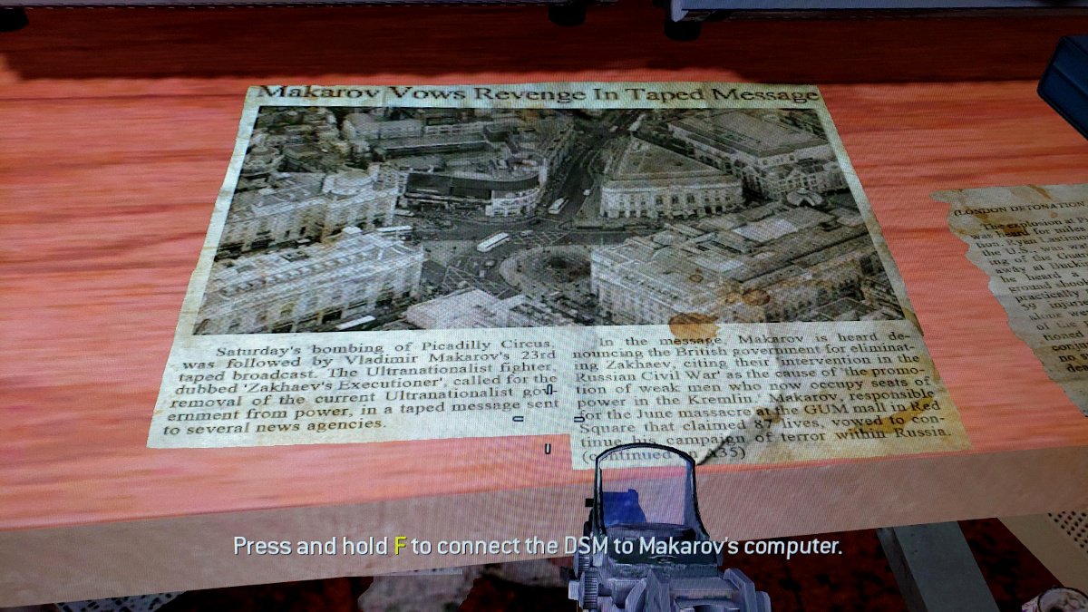 На одном из уровней Modern Warfare 2 можно отыскать газету, где описана трагедия в Лондоне. Как и в новой Modern Warfare, площадь Пикадилли была атакована террористами, устроившими мощный взрыв. Правда, в мелких деталях все-таки есть разница.