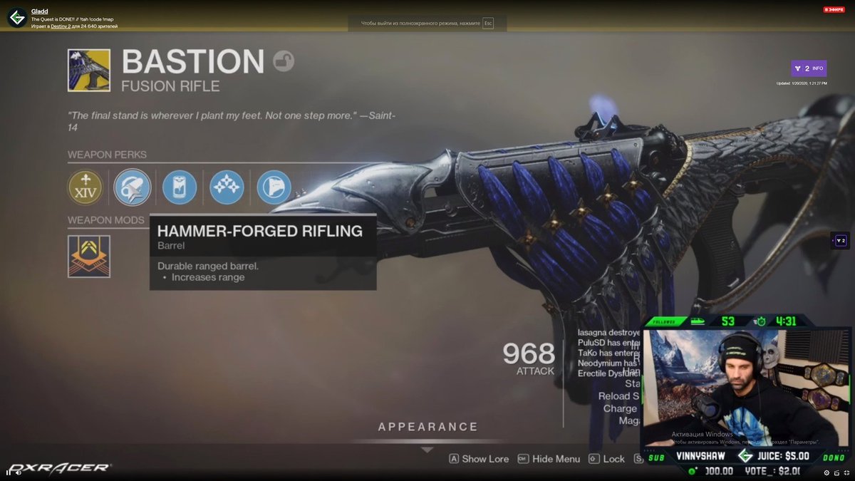 В конце концов Стражу выдадут экзотическую плазменную винтовку Бастион. Интересно, что о существовании этого оружия уже было известно: оно должно было появиться в Destiny 2 28 января. Видимо, поручение с Коридорами времени стало своеобразным ранним доступом к пушке.