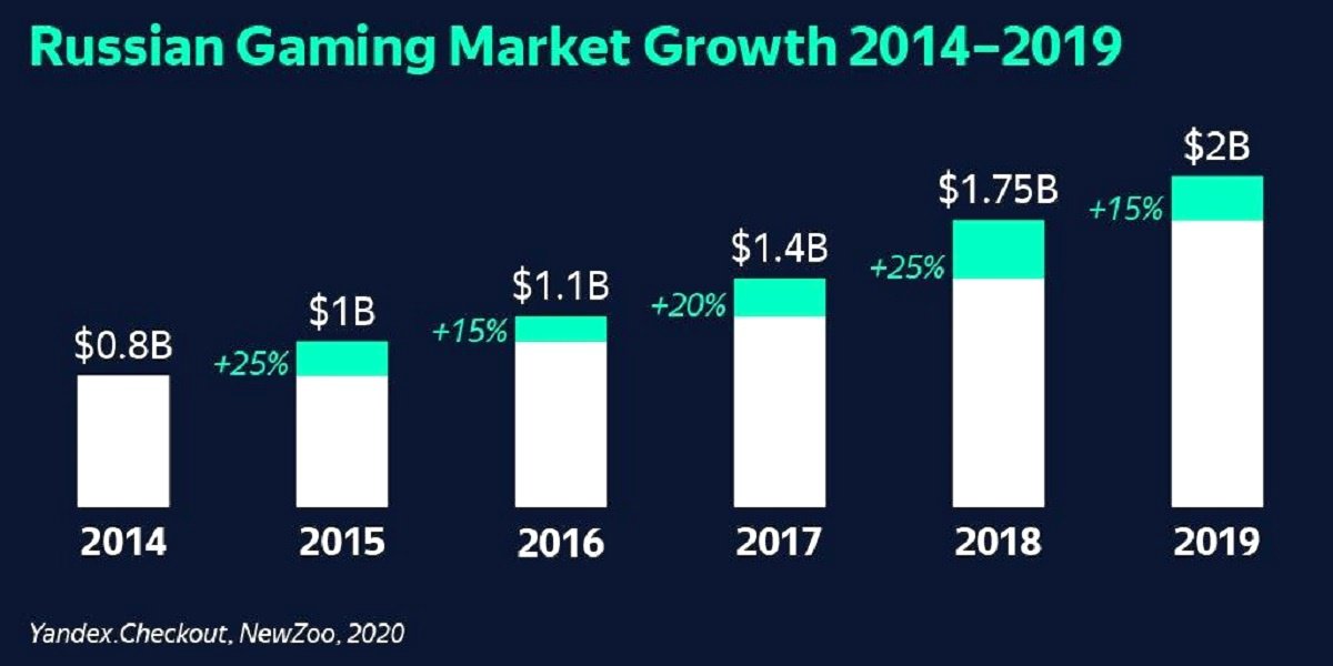 Сервис «Яндекс.Касса», обеспечивающий прием онлайн-платежей, оценил размер российского игрового рынка в 2019 году в $2 миллиарда, или примерно 122 миллиарда рублей. По сравнению с 2018 годом прирост составил около 15 миллиардов рублей.