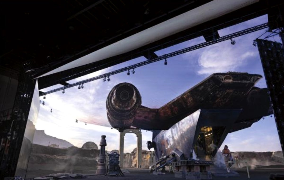 Размеры декораций могут быть очень разными — от бочки до фрагмента космического корабля. К примеру, был построен муляж нижней части космического корабля главного героя «Мандалорца»: его аккуратно совместили с верхней частью корабля, созданной 3D-художниками и выведенной на экраны.