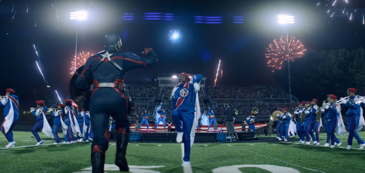 Похоже, Соколу действительно не суждено стать Капитаном Америка. Хотя в начале ролика Сэм Уилсон тренирует с щитом, позже он появляется в кадре в традиционном костюме Сокола, а щит оказывается у персонажа в костюме, напоминающем наряд Капитана Америка.