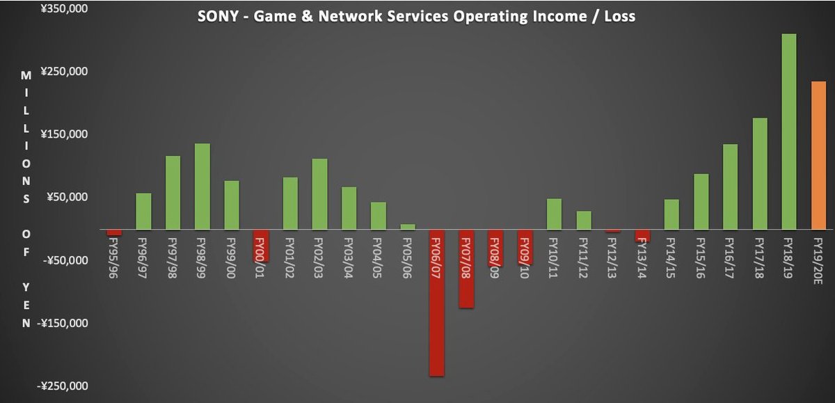 Хотя выручка игрового подразделения Sony снижается, сейчас компания в лучшем положении, чем во время завершения предыдущего консольного цикла. Игровое подразделение по-прежнему генерирует прибыль, разработка нового поколения PlayStation не вывела компанию в минус.