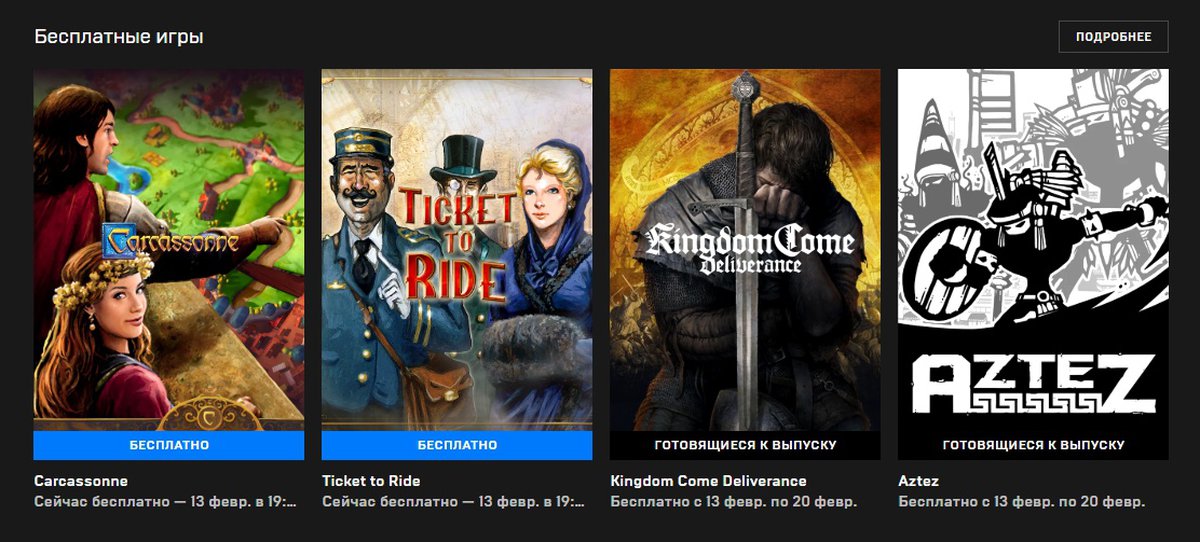 Судя по обновившейся главной странице магазина, раздача Kingdom Come Deliverance стартует 13 февраля, игра будет доступна до 20 февраля включительно. Возможно, это ошибка: совсем недавно в списке будущих бесплатных игр был только Aztez.