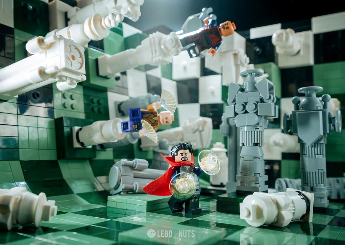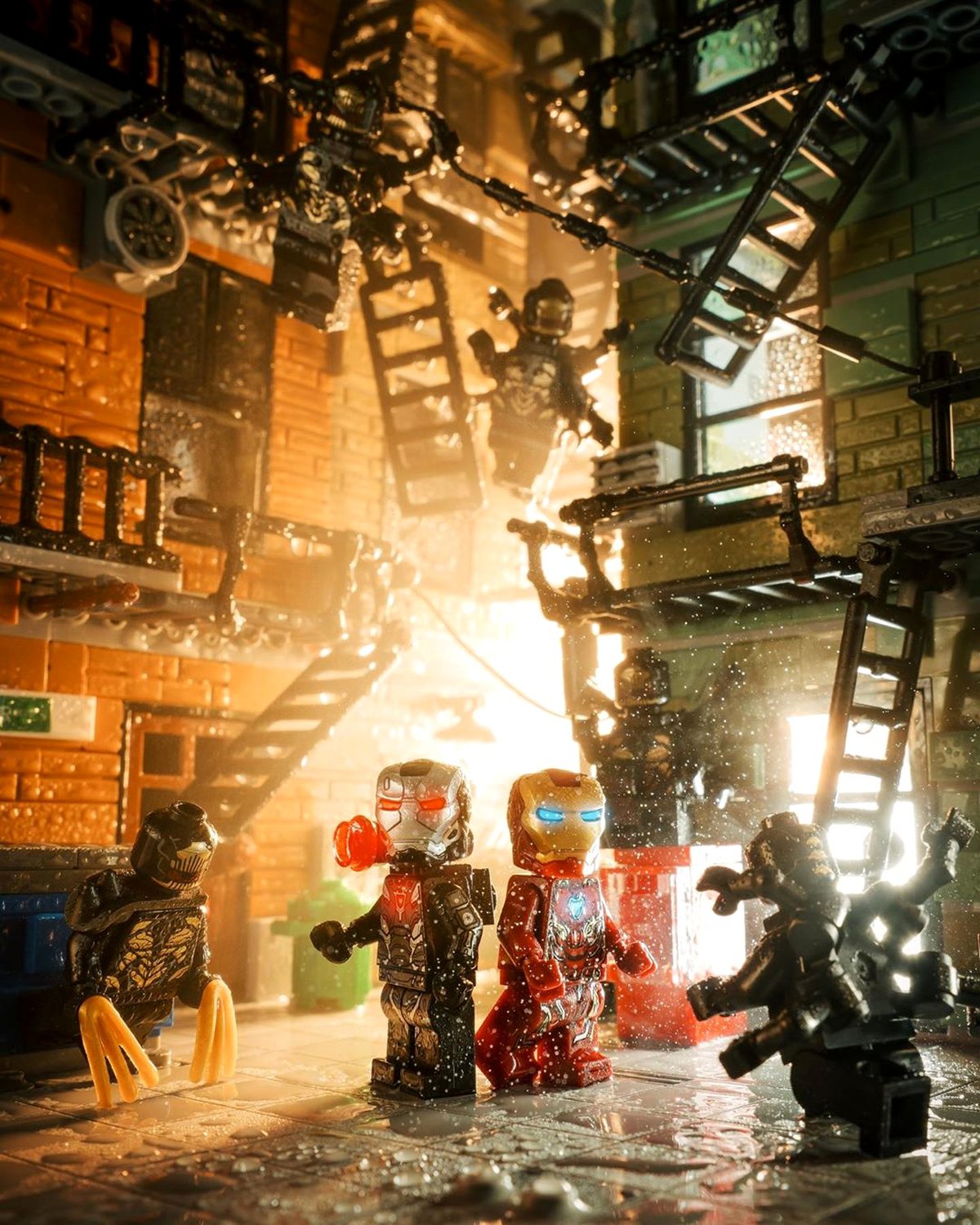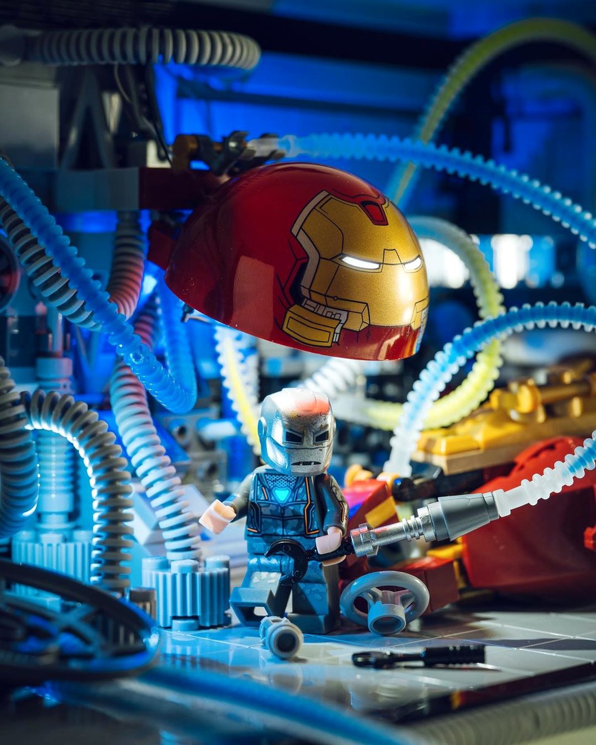 У себя в Instagram дизайнер выкладывает фотографии детально проработанных сцен из известных вселенных, тщательно воссозданных с помощью LEGO. Например, тут есть игры Доктора Стрэнджа и Древней с реальностью, Бэтмен, настигающий Харли Квинн, и Тони Старк, собирающий костюм Железного человека.