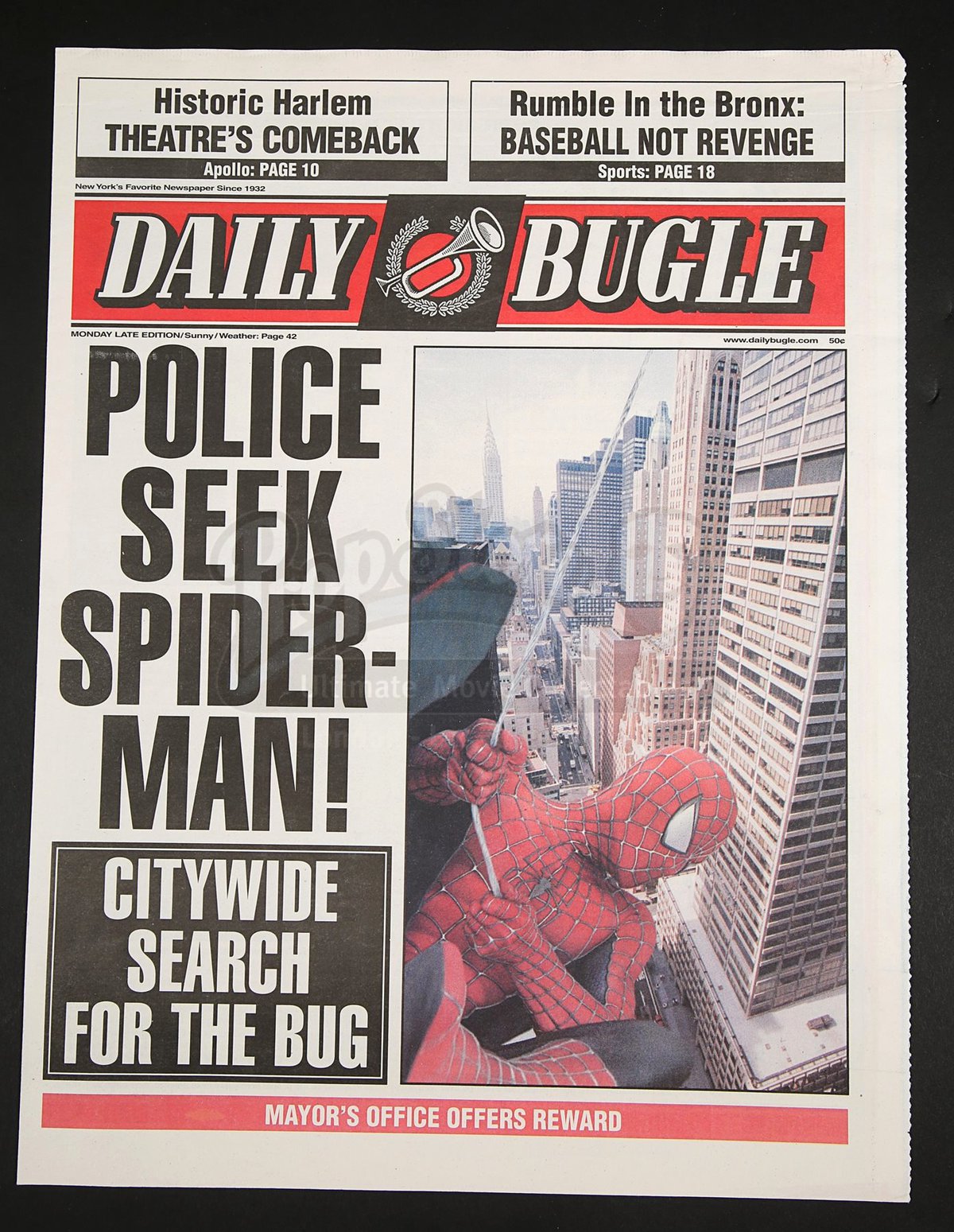 А вот так выглядел логотип Daily Bugle из вселенной «Человека-паука» Сэма Рэйми. Он идентичен тому, что можно увидеть на фотографии из Лос-Анджелеса.