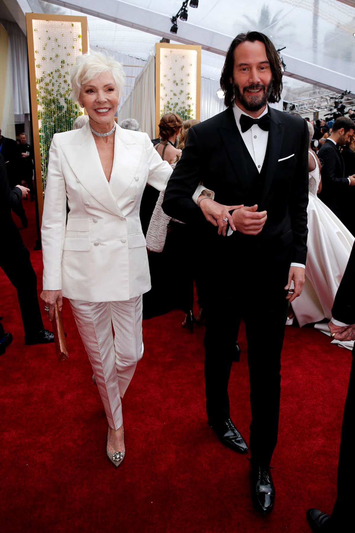 Вот еще несколько фотографий с красной ковровой дорожки «Оскара». Интересный момент: маме Ривза 76 лет, но выглядит она ощутимо моложе; теперь фанаты будут еще активнее шутить про бессмертие актера.