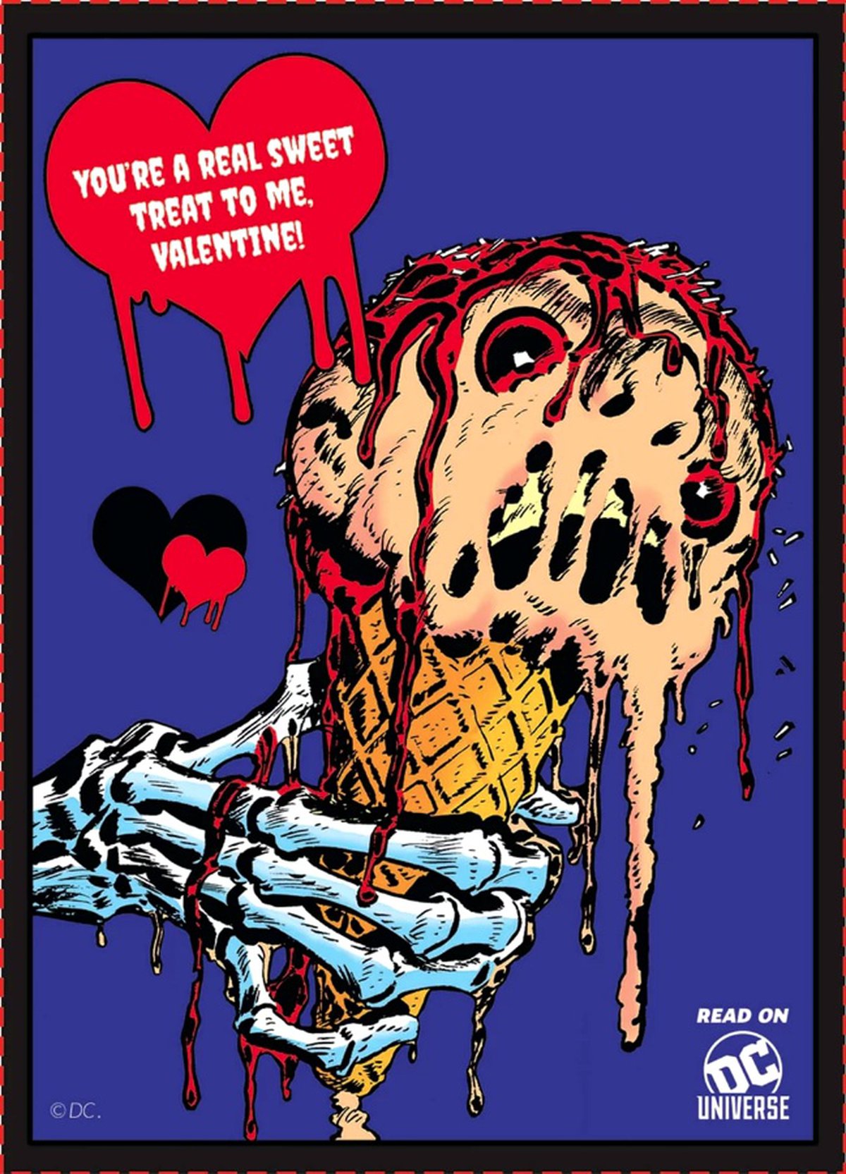 В честь Дня святого Валентина в DC Universe подготовили специальный набор валентинок для фанатов комиксов DC. Валентинки необычные: они стилизованы под классические комиксы в жанре хоррор.