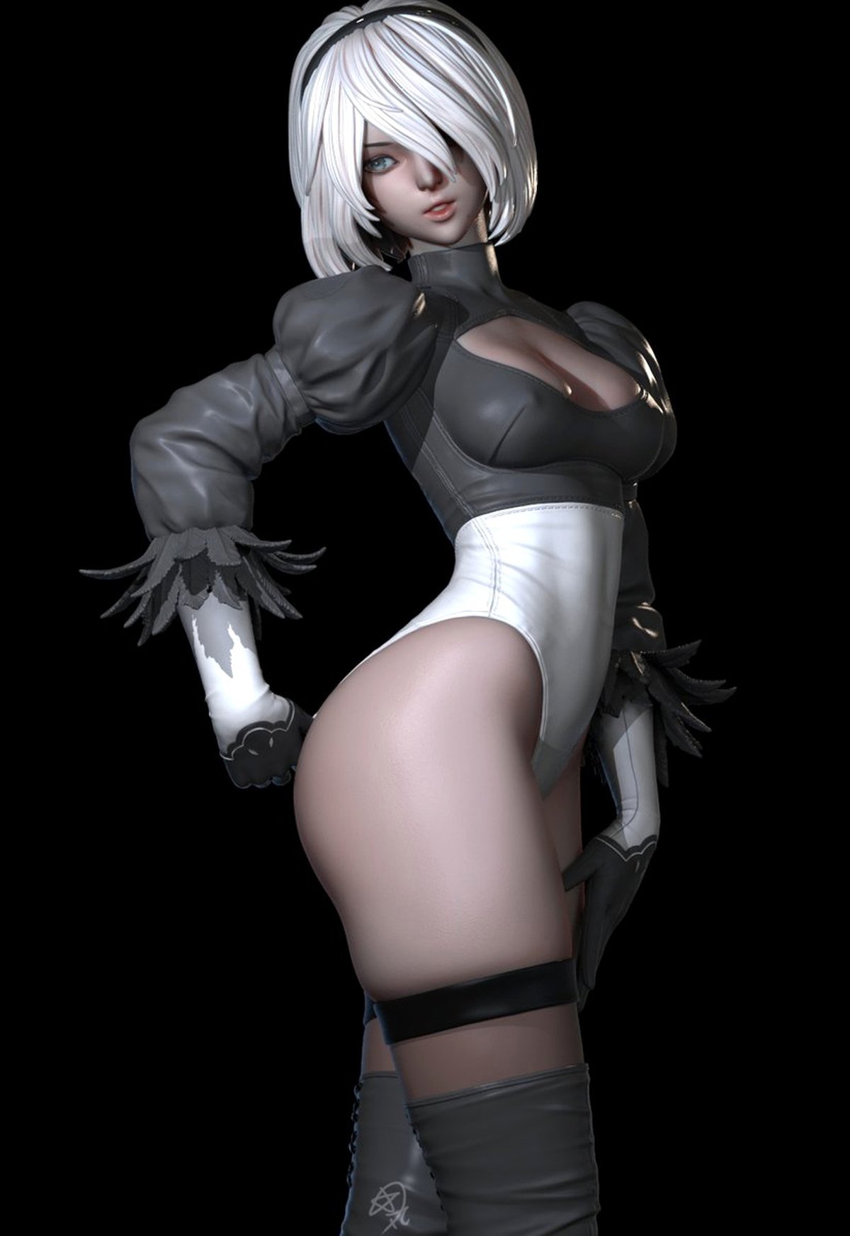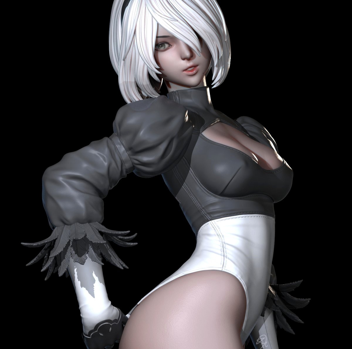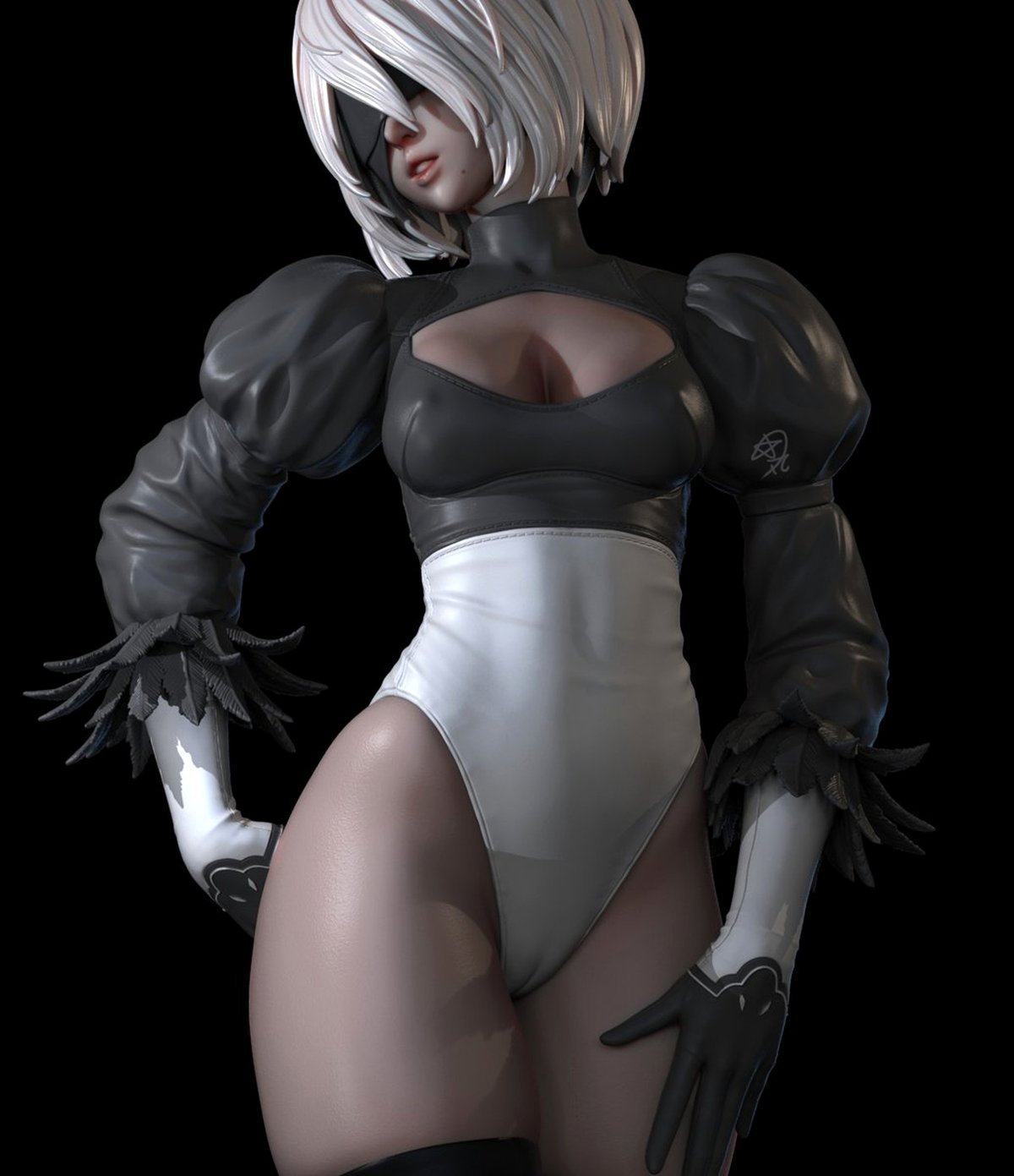 Художник не планирует ставить изготовление таких статуй на поток — это личный проект. Хотя его 2B еще не окрашена, LiuXingWan может показать, как будет выглядеть ее финальный вариант: рендеры художник тоже демонстрировал.