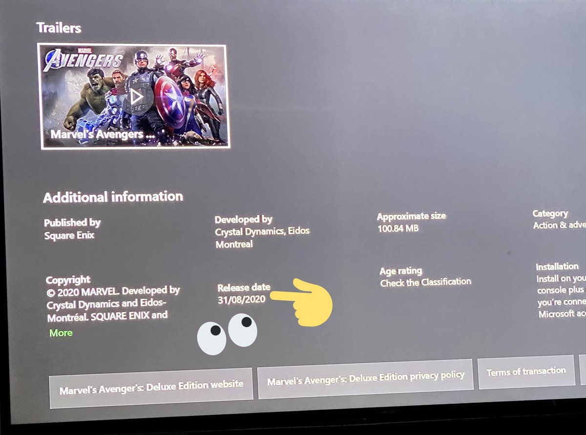 В магазине Microsoft появилась страница делюкс-издания Marvel's Avengers с альтернативной датой выхода. Хотя релиз игры запланирован на 4 сентября 2020 года, покупатели делюкс-издания получат ее 31 августа.