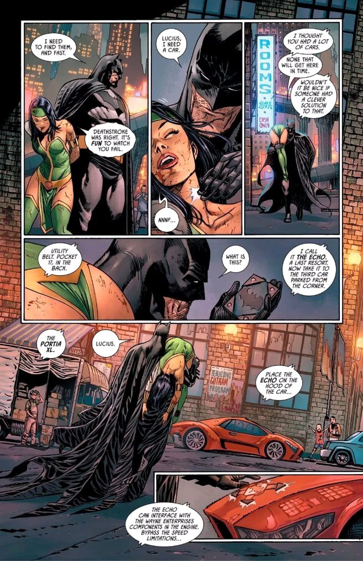 Правда, использование гаджета означает, что Бэтмен сам становится преступником: фактически он угоняет машину. В комиксе Бэтмену повезло: Люциус предлагает Темному Рыцарю испытать Echo на собственном автомобиле.