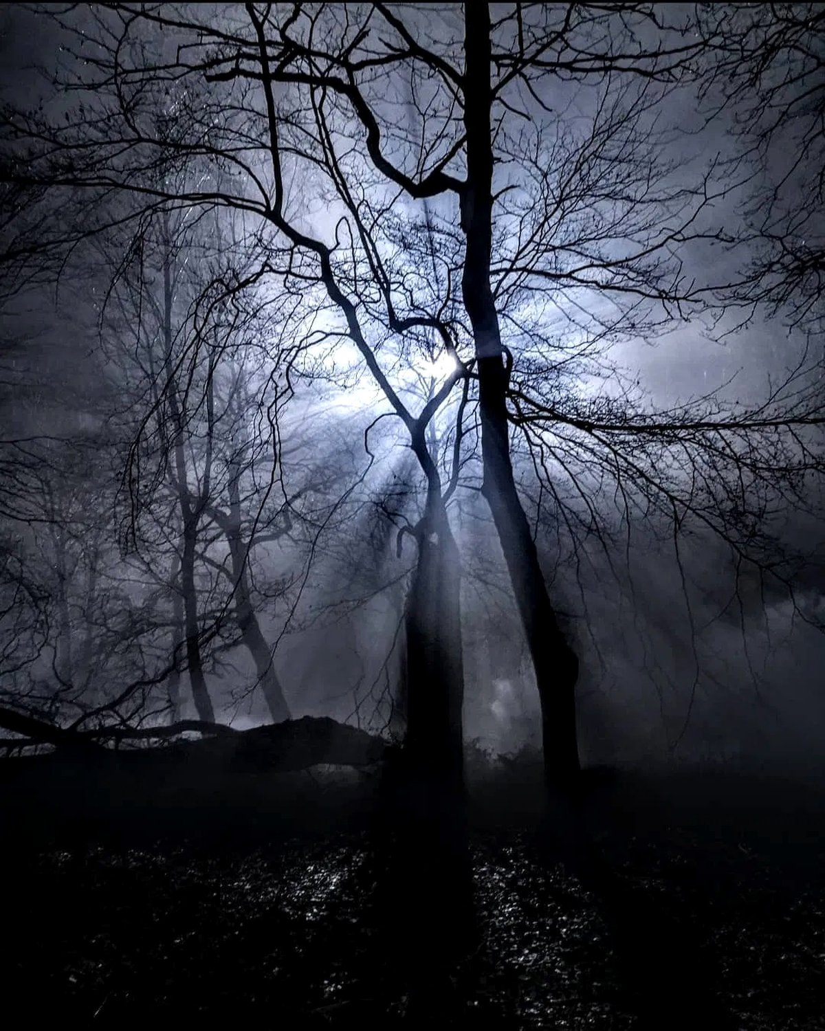По зловещему лесу движутся зловещие всадники на зловещих конях.