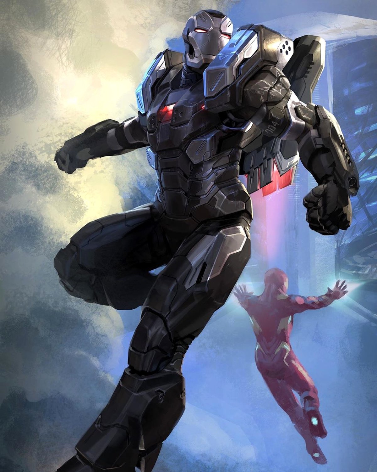 Параллельно планировалось снабдить Воителя более мощной броней с улучшенным оружием и огромными ускорителями в стиле аниме — они были нужны, потом что финальное сражение с Таносом должно было идти в космосе. От этого дизайна отказались, когда финальную битву перенесли из космоса в штаб-квартиру Мстителей.