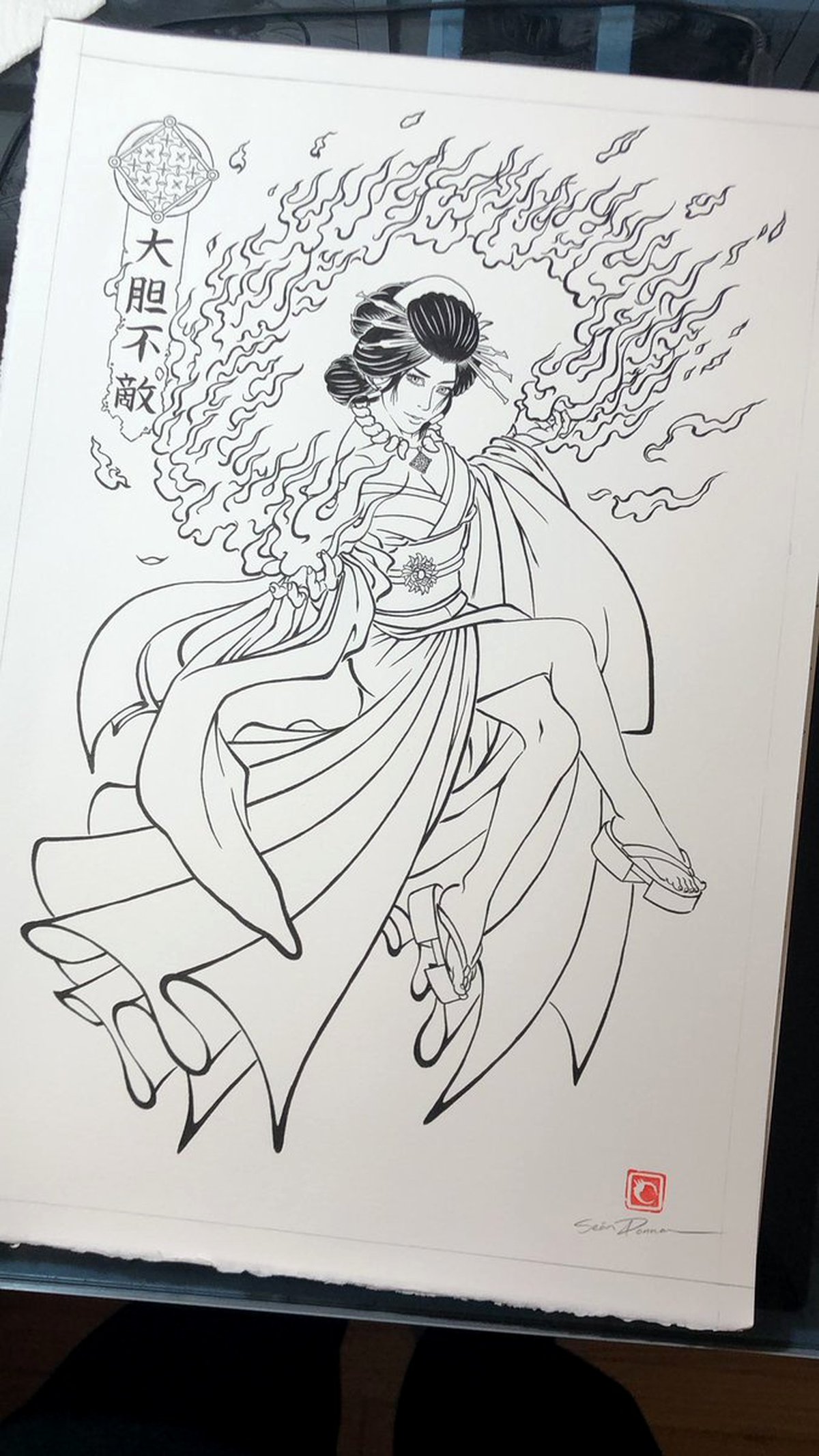 Рыжая Трисс Меригольд получила кимоно в стиле платья из «Дикой Охоты» и играет с огнем, Цири сражается с призраками, Йеннифер на арте Шона вот-вот выжжет кого-то молниями. А Геральт отправился охотиться на чудовищ.