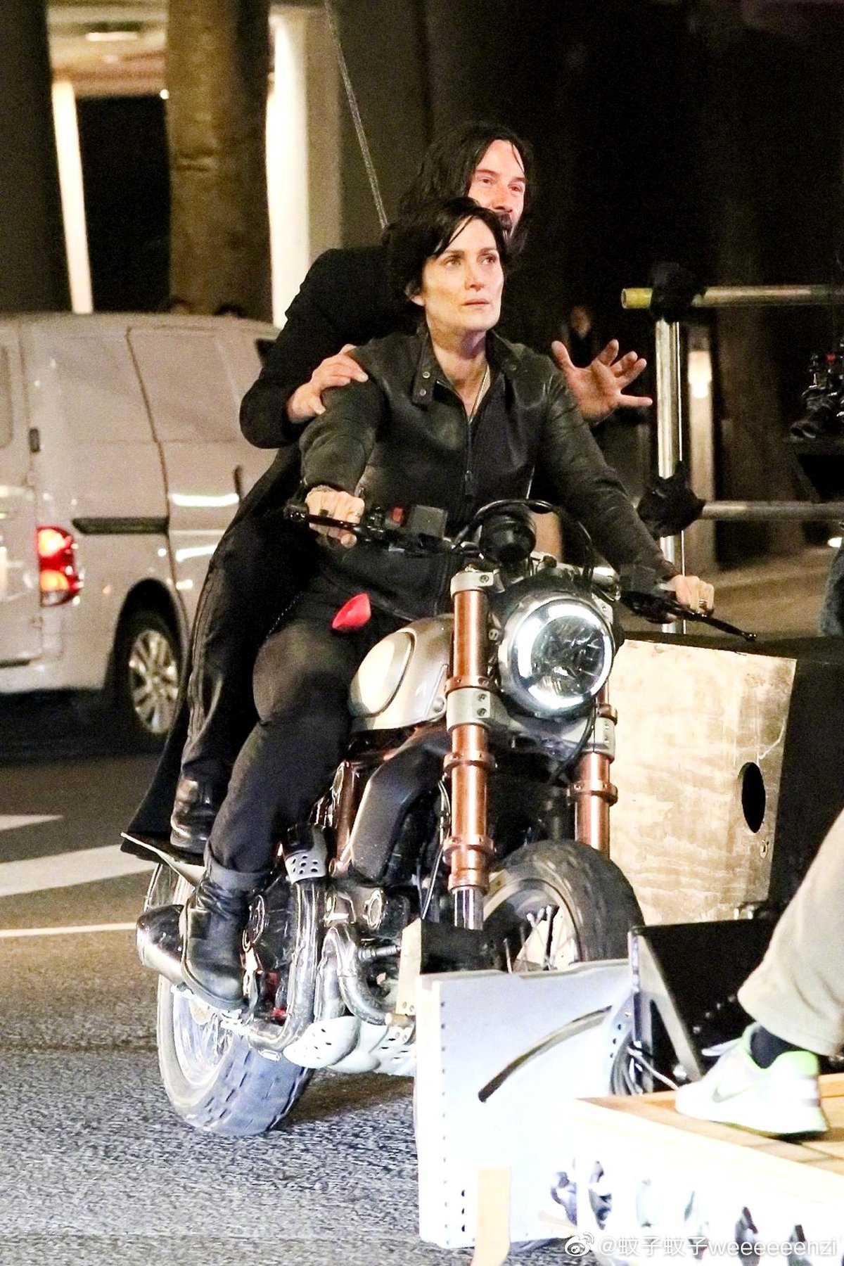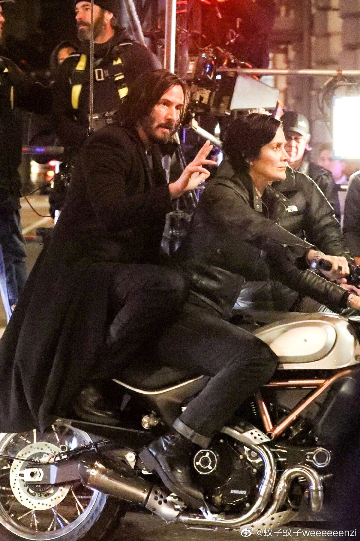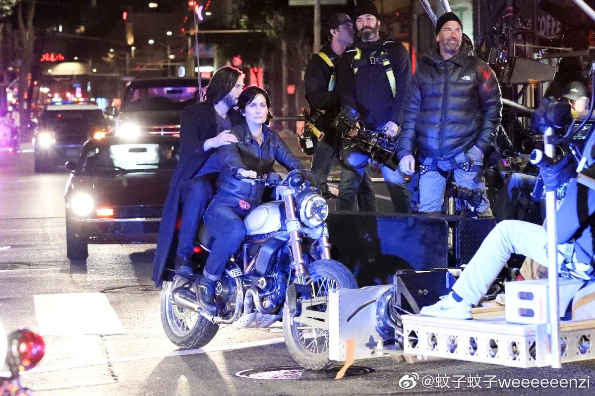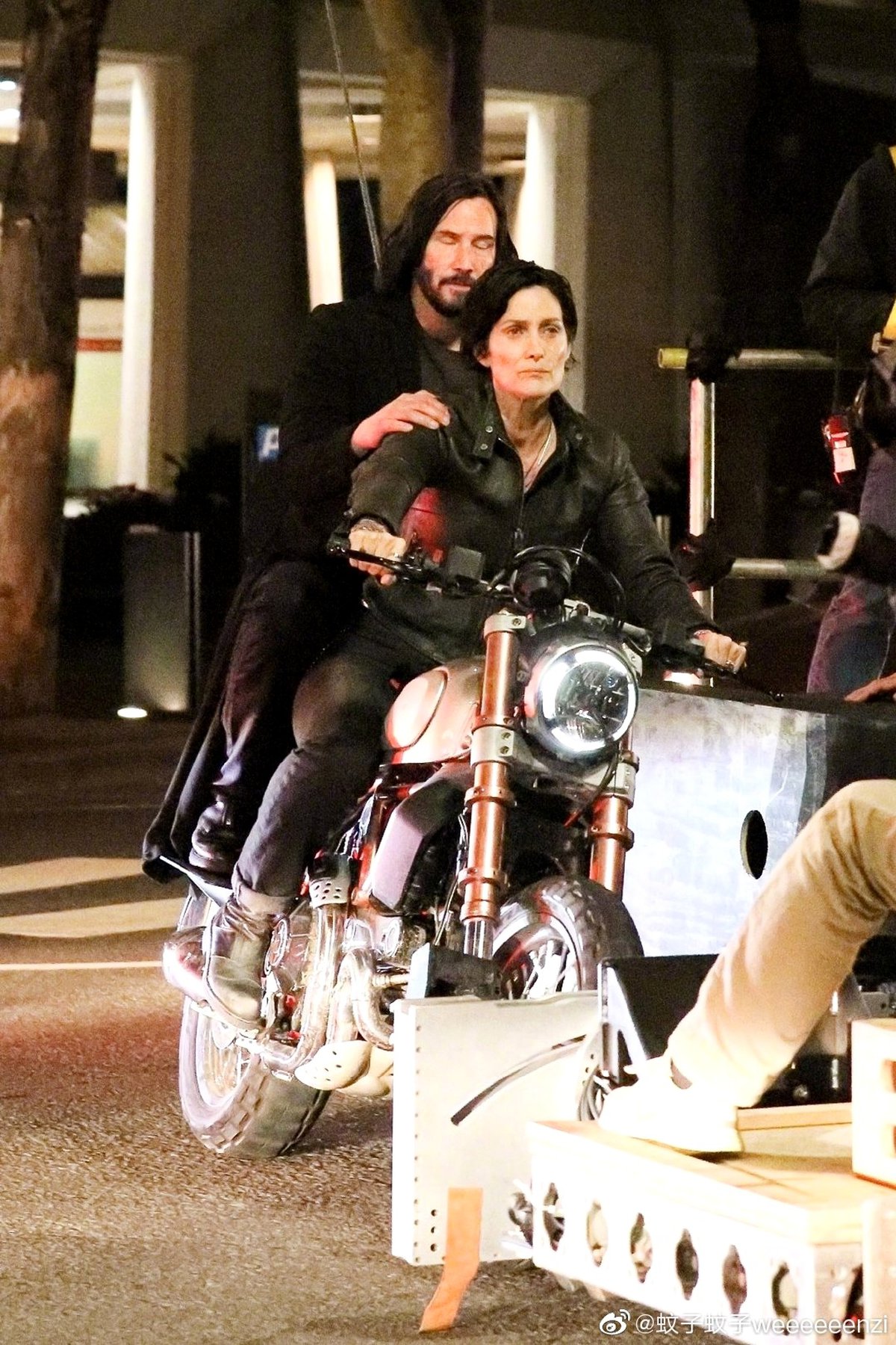 Мы уже показывали несколько не слишком качественных роликов со съемочной площадки «Матрицы» в даунтауне Сан-Франциско: Нео и Тринити прогуливались по улицам и гоняли на мотоцикле. В китайской соцсети Weibo появились качественные кадры с Киану Ривзом и Кэрри-Энн Мосс.