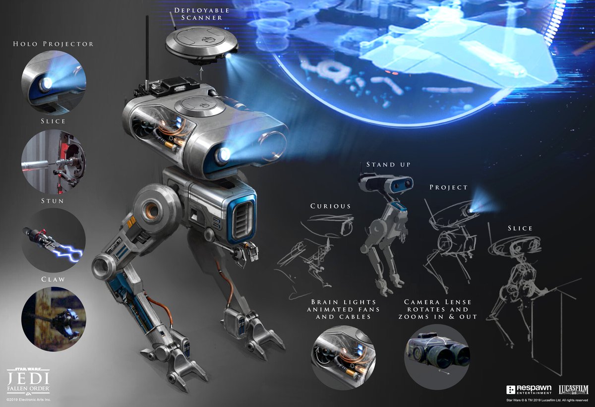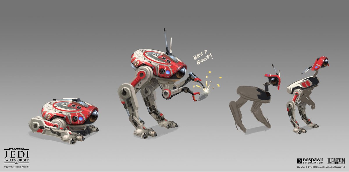 На артах можно увидеть альтернативные версии персонажей и сцен, рассмотреть оружие главных героев и их самих. Имейте в виду: некоторые концепты могут раскрывать важные сюжетные повороты Jedi Fallen Order.