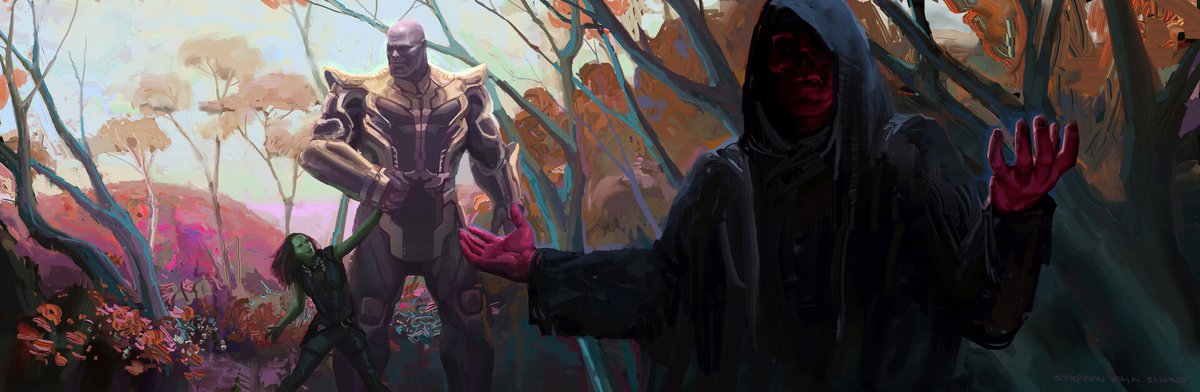 Художник Стивен Ширле, сотрудничавший с Marvel Studios при создании нескольких фильмов киновселенной, выложил ряд концепт-артов последних частей «Мстителей». Это продолжение серии артов с убийством Ника Фьюри и Небулой с Перчаткой бесконечности.