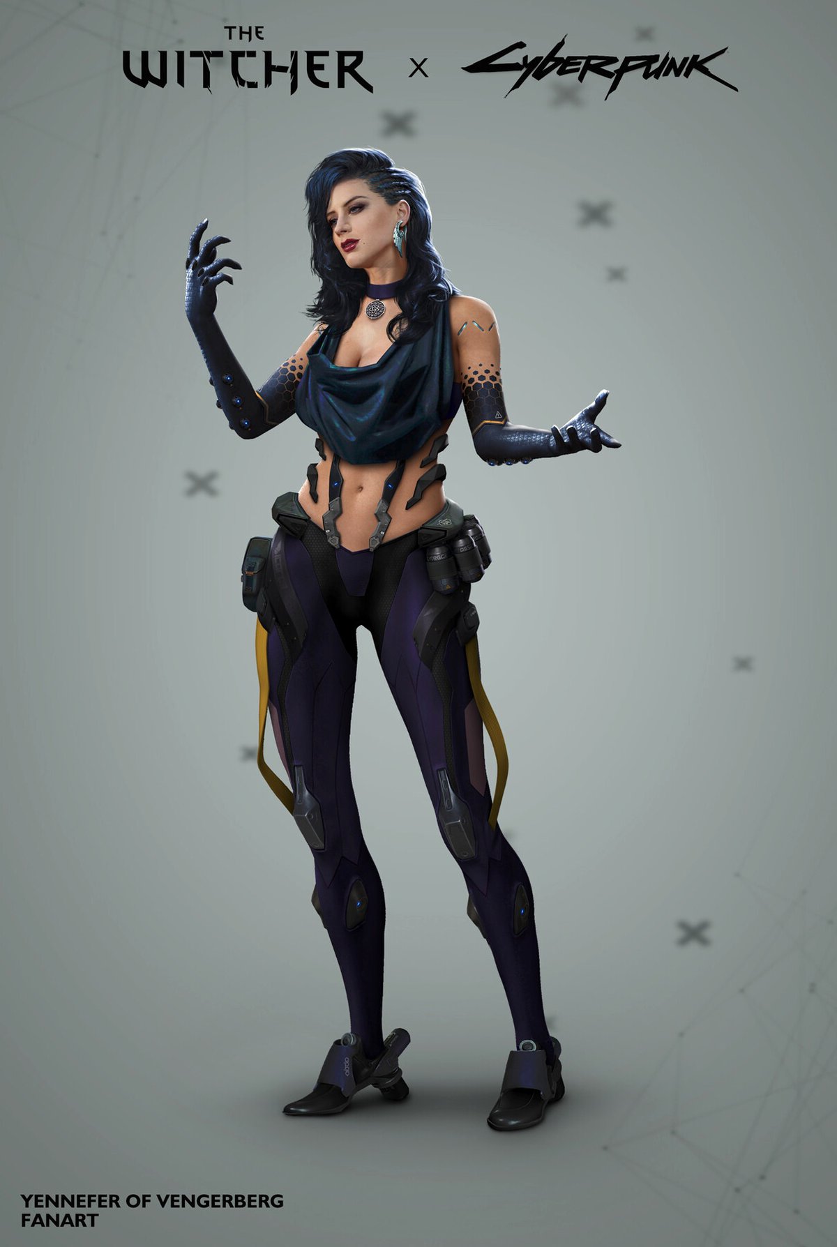 Шанхайский художник RX выпустил еще несколько артов из своей серии, объединяющей персонажей The Witcher 3 и мир Cyberpunk 2077. На этот раз в будущее попала Йеннифер: колдунья по-прежнему владеет магией, теперь — технологической.