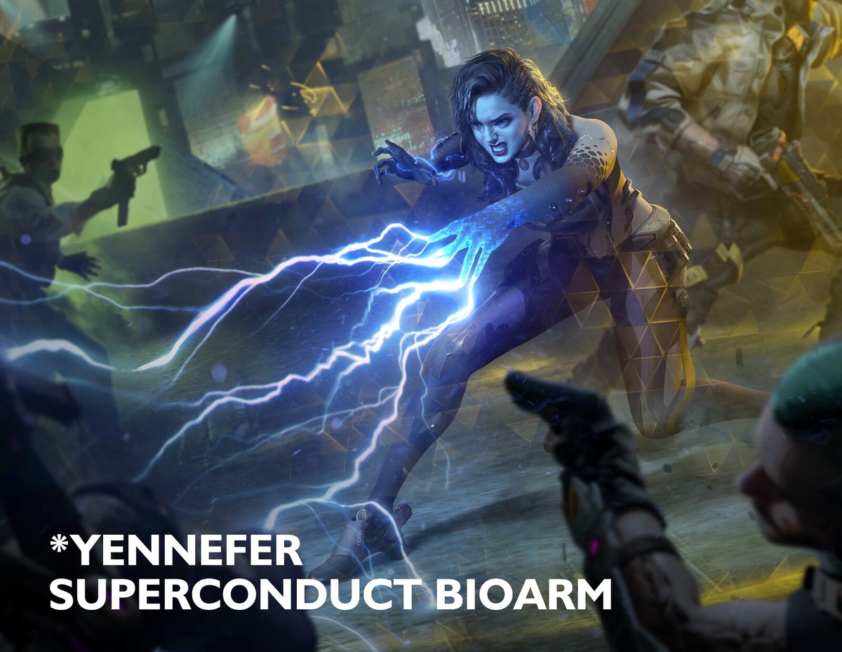Футуристическая версия Йеннифер получила множество имплантов. Похоже, у нее полностью заменены ноги и руки; благодаря новым имплантам волшебница по-прежнему может призывать молнии. Гранаты, впрочем, тоже будут не лишними.
