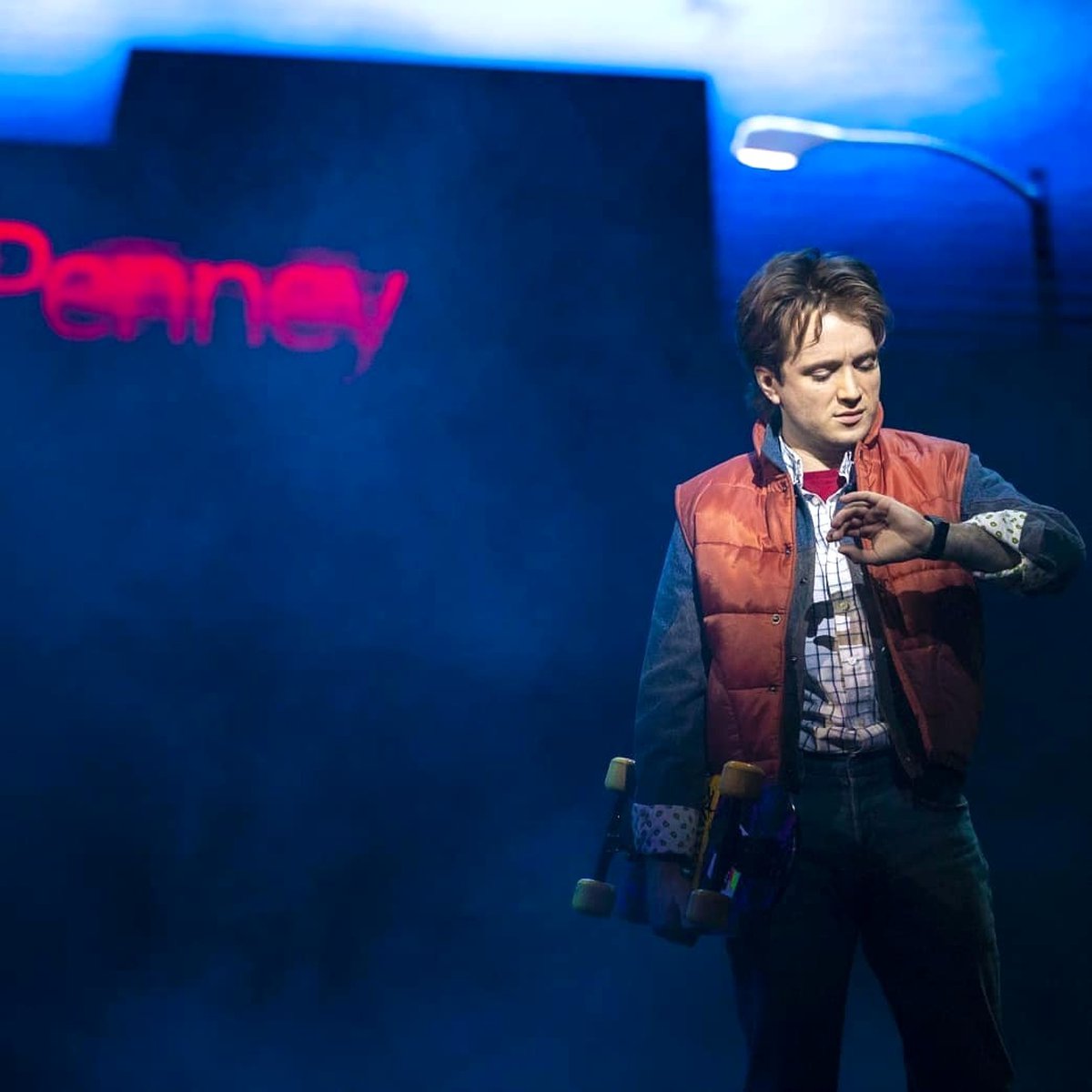 Главные роли в мюзикле играют Олли Добсон (Марти Макфлай) и Роджер Барт (Эммет Браун). В Манчестере шоу будут показывать на протяжении 12 недель, до середины мая; затем постановка переедет в Лондон.