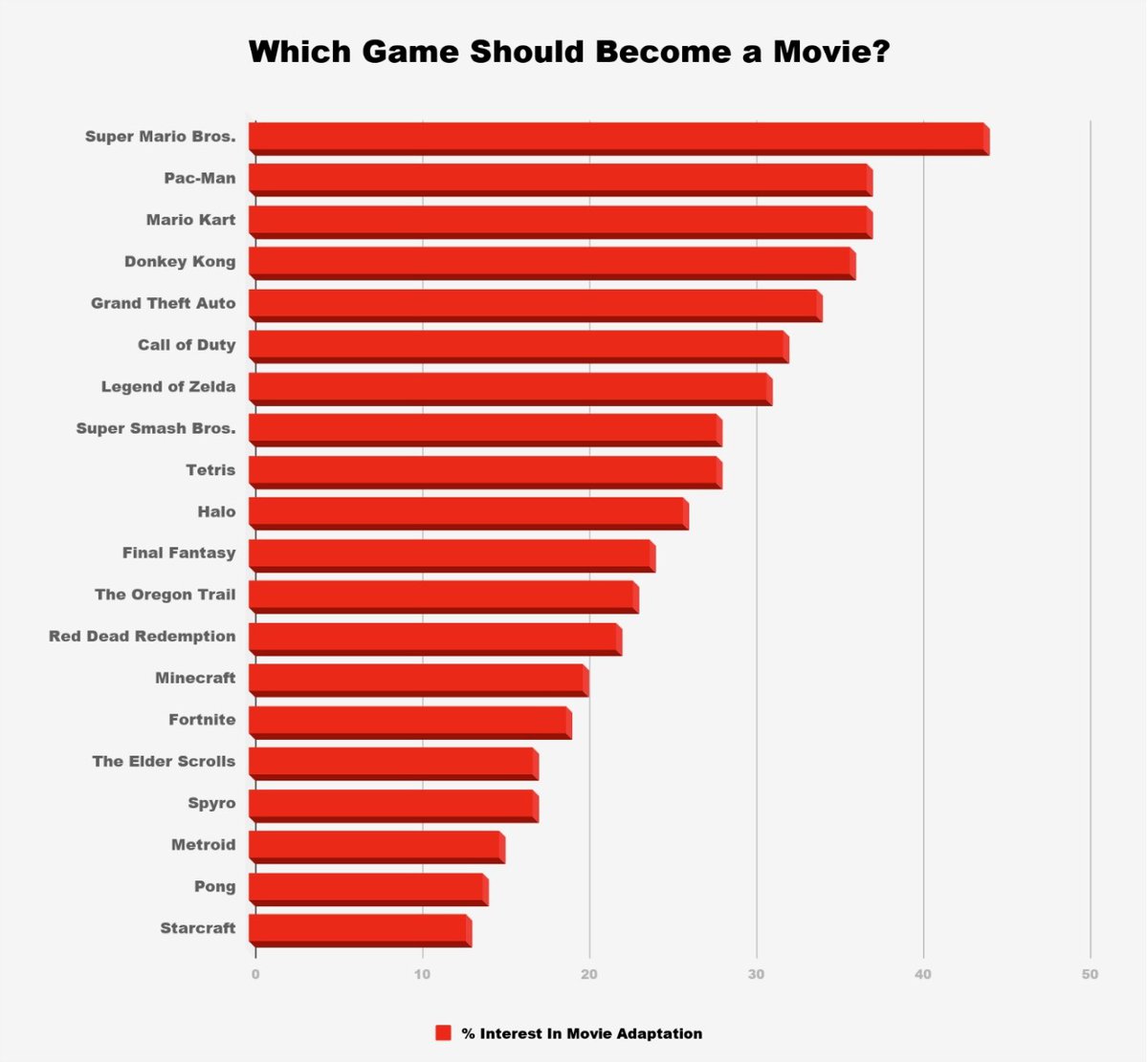 The Hollywood Reporter и исследовательская компания Morning Consult выяснили, экранизации каких игровых серий больше всего хотят увидеть американские зрители. В опросе поучаствовало 2200 респондентов в возрасте от 18 лет.