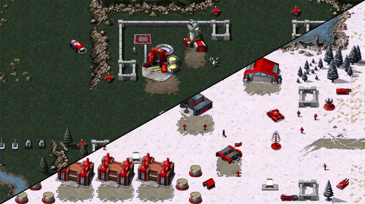 В левой части изображения можно увидеть ремастер Command & Conquer. Эту игру уже показывали в динамике — геймплейные кадры есть здесь, — а из ремастера Red Alert фанатам показывали только скриншоты новых моделей.