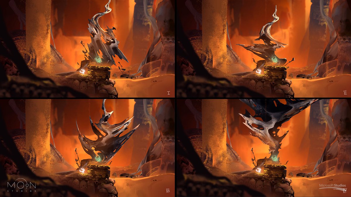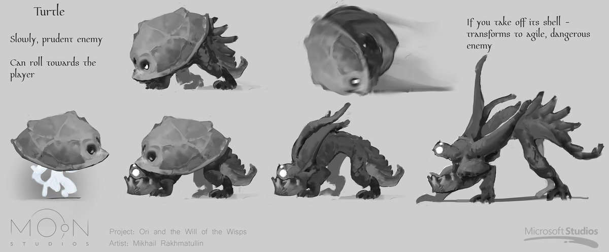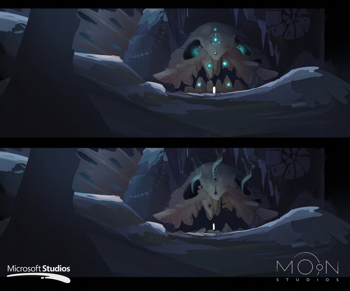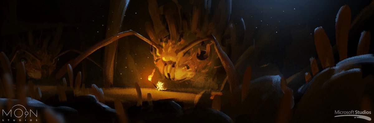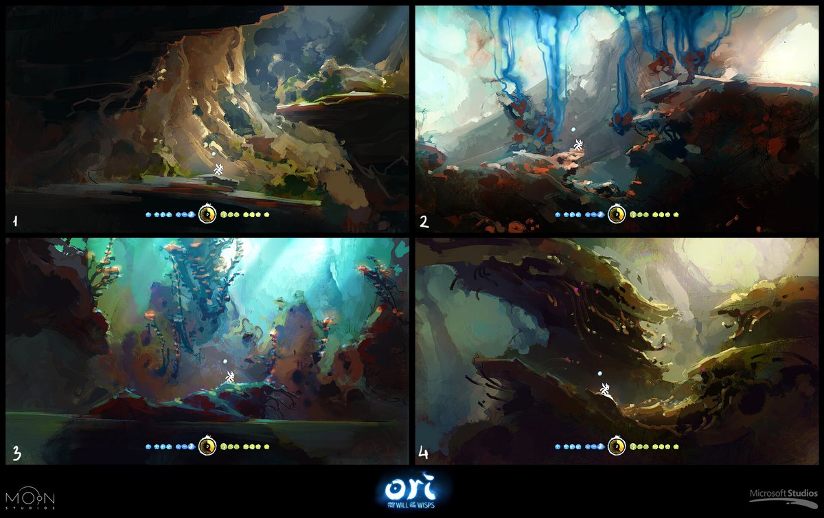 Помимо набросков локаций, иногда больше напоминающих картины, у нас есть концепты противников Ори и нескольких боссов. Также художники опубликовали несколько раскадровок сюжетных катсцен игры.