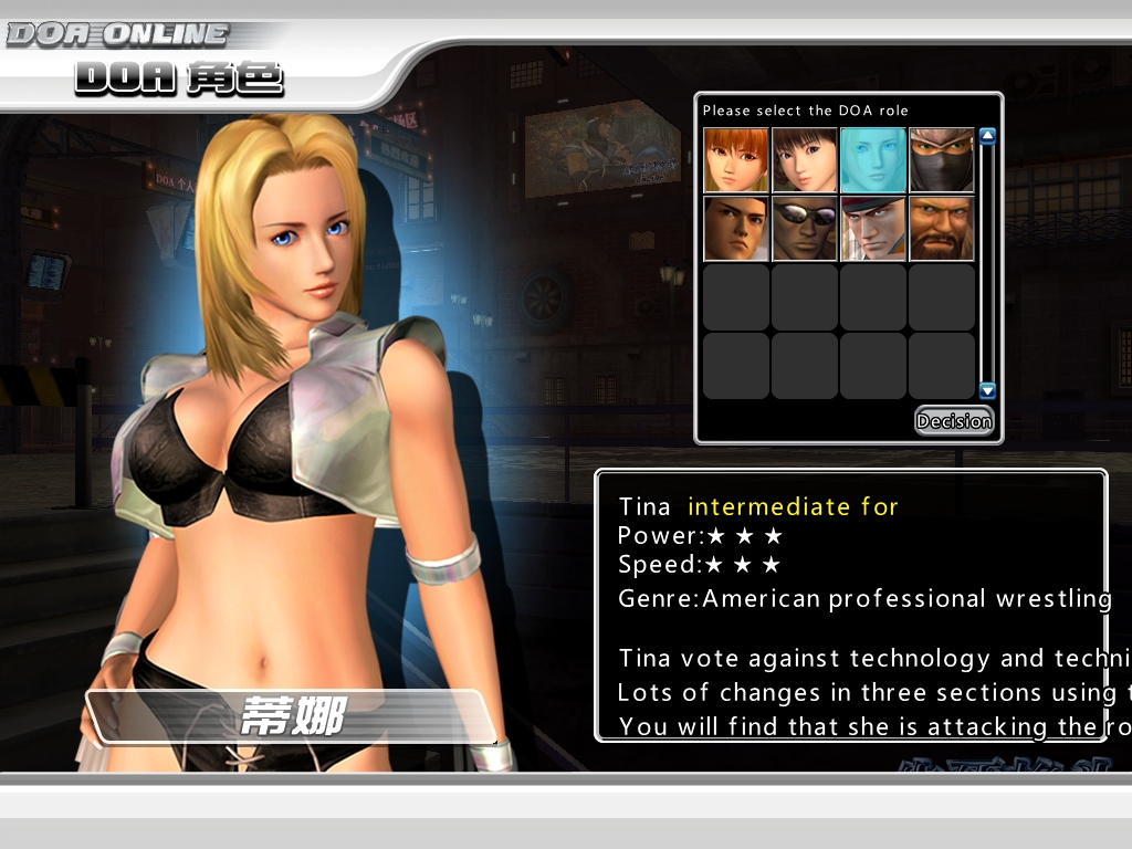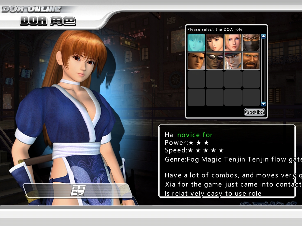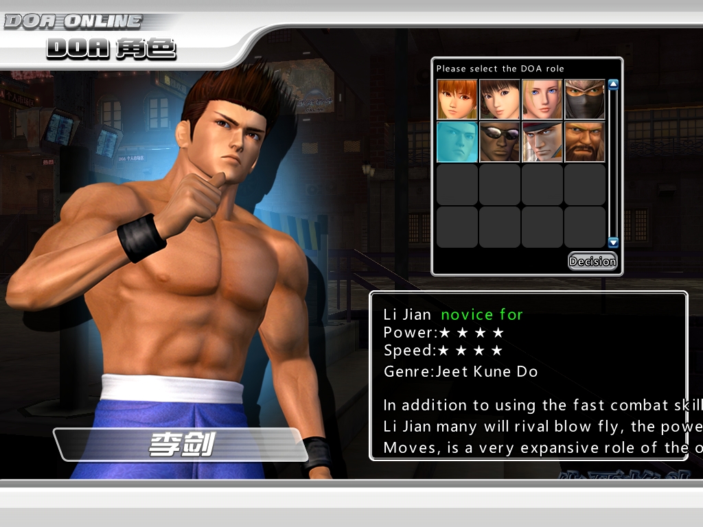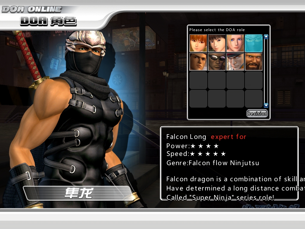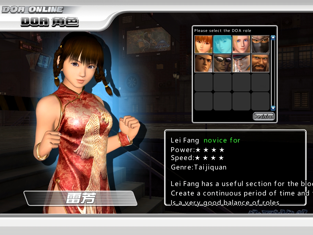 Игра включает в себя 28 арен (вот тут сейчас DOA 6 заплакала горькими слезами, а ещё сильнее тот, кто купил её за полную стоимость...), а также 15 героев: Касуми, Аянэ, Тина, Хелена, Рю Хаябуса, Джан Ли, Бэйман, Зак, Ген Фу, Лей Фанг, Басс, Леон, Хитоми, Тенгу и Еин (клон Хаятэ).