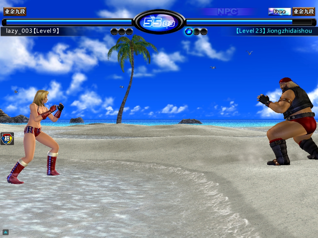 Переходим к следующему режиму – Free Battle. В данном режиме игра подбирает вам соперника, либо NPC, либо живого игрока. Но, разумеется, на моём сервере из живых только я, поэтому игра любезно даёт мне NPC... Уровень которых значительно превышает мой, уровень ставится рандомным образом каждый раз и каждый бой. Как вы поняли, уровень в онлайн игре имеет значение, а когда соперник превышает вас на 10 уровней – избивать вас будут как беззащитного котёнка... А ваши удары будут как щекотка... Впрочем, ради этого я записал даже видео с тем, как меня нагибали раз за разом... Больше я в этот режим не играю...
