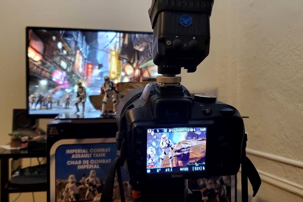 Типичная схема съемки показана на фотографии выше. Как правило, Мэттью просто выставляет фигурки в нужные позы, а в качестве фона использует подходящий арт. Время от времени приходится прибегать к спецэффектам, стирая подпорки, добавляя лазерные импульсы или искры.
