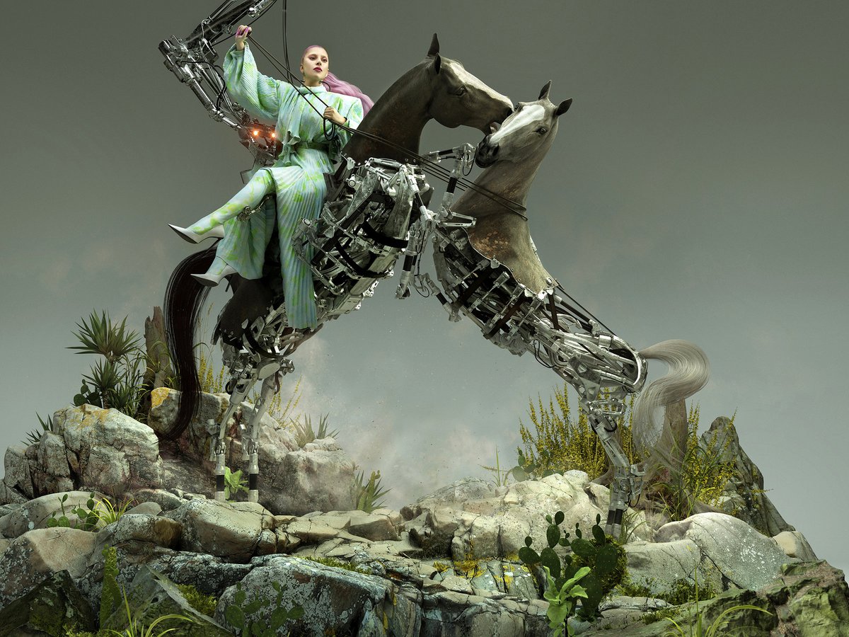 В результате у Фредерика Хеймана получилось несколько киборгизированных образов певицы. На некоторых артах Гага максимально напоминает саму себя, другие больше похожи на скриншоты из какого-нибудь Cyberpunk 2077.