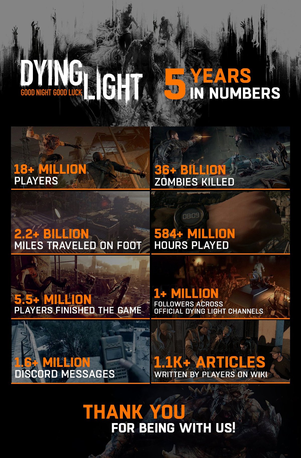 Разработчики Dying Light, сейчас празднующие пятилетие игры, выпустили инфографику с рассказом о подвигах игроков за все эти годы. Оказалось, что у Dying Light очень преданная и активная аудитория, исчисляющаяся миллионами.