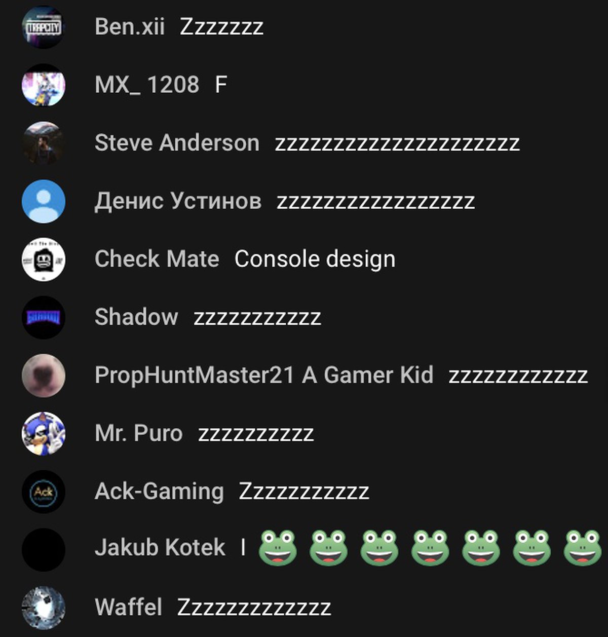 На протяжении 50 минут главный архитектор PlayStation 5 Марк Черни, стоящий перед четырьмя затемненными силуэтами, рассказывал о трассировке звука, гигабитах, терафлопсах и важности формы ушей. Рассказу Марка внимали несколько сотен тысяч фанатов. Ну, некоторое время: в какой-то момент чат выглядел вот так.
