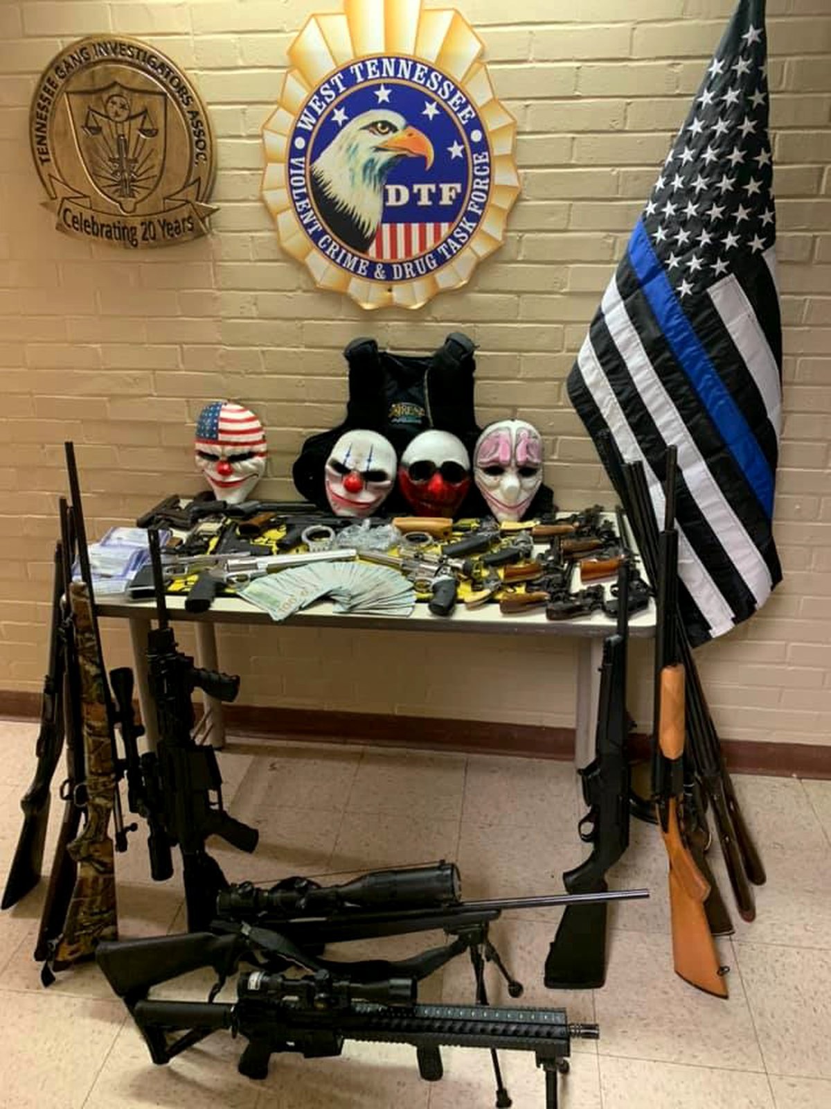 Судя по фотографии, выложенной полицейскими, бандиты были снаряжены ничуть не хуже героев шутера Overkill Software. Здесь есть бронежилеты, несколько винтовок с оптическими прицелами, множество пистолетов, дробовики.