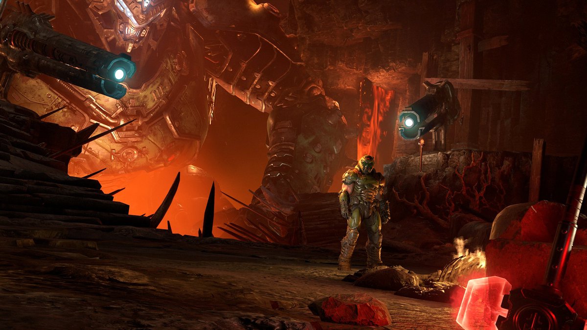 Во-первых, если задержаться на одном месте, то Палача Рока могут быстро размотать. Во-вторых, становится заметно, как именно разработчики добились отличной оптимизации: время от времени даже на максимальных настройках Doom выглядит не очень.