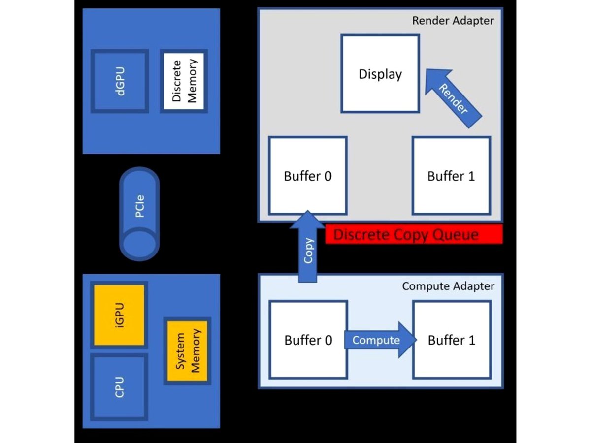 Объединить возможности двух устройств можно благодаря Multi-GPU Explicit Multi-Adapter, достаточно старой функции, присутствующей в DirectX 12 уже несколько лет. С ее помощью разработчики могут достаточно просто раскидывать задачи между видеоядрами.