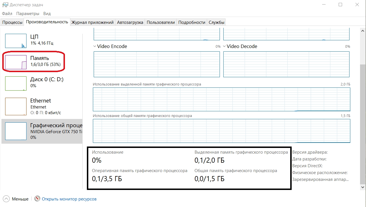 Здесь "выделенная память графического процессора"-видеопамять в видеокарте, "Общая память графического процессора"- объём ОЗУ, выделенный видеокарте,"Оперативная память графического процессора"- Сумма выше перечисленных датчиков. Если "оперативная память графического процессора" будет близка к заполнению, то система выдаст ошибку о недостатка памяти для видеокарты. Обычно вылет происходит при заполнении 85% максимально доступного числа. Т.е. для 6 ГБ это не выше (6*0,85=)5,1ГБ. Если датчик показывает потребление выше 5,1 ГБ, то есть шанс получить ошибку. Теперь вы поняли суть ошибки и при каких условия она может возникнуть. Теперь поговорим о игре и о её потреблении на низких настройках в 1080p