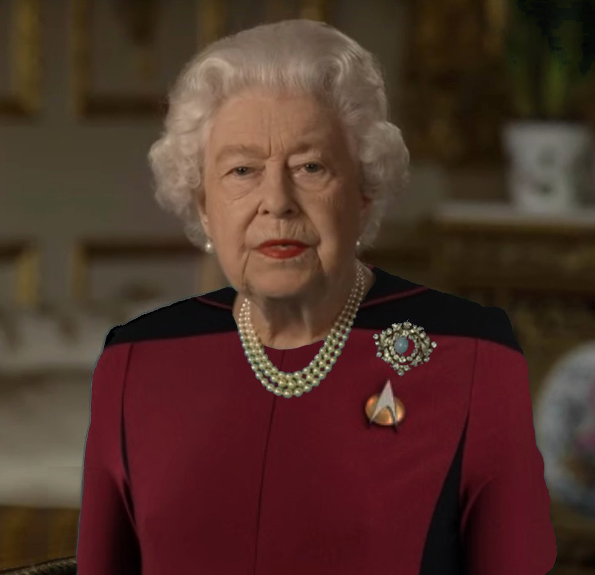 Елизавета II выступила в платье-гринскрине. Теперь она — Каратель и капитан Звездного флота