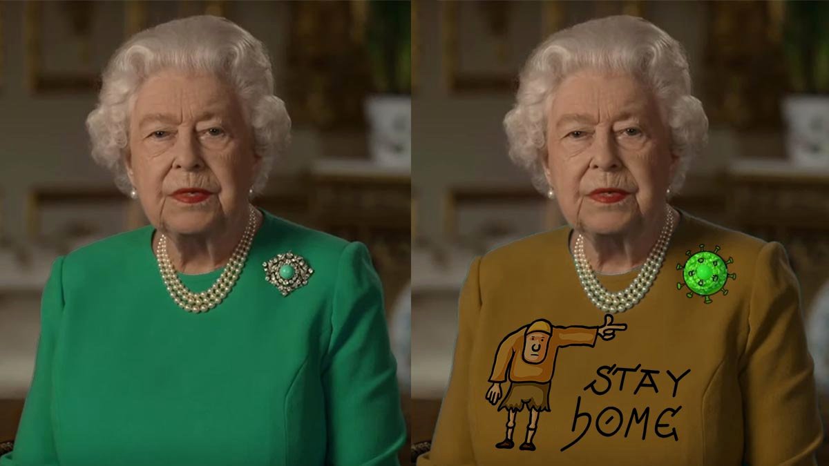 Некоторые пользователи твиттера сообразили, что тот же трюк можно провернуть и с записью обращения королевы, добавив туда немного динамики и экшена или использовав платье Елизаветы II в качестве экрана.