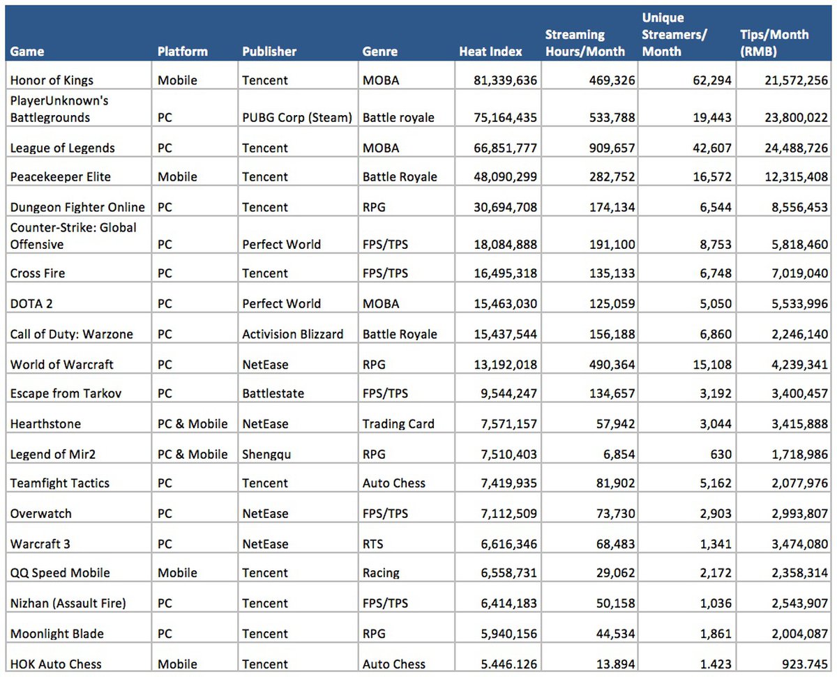 По оценке Niko Partners, с точки зрения количества уникальных стримеров в Китае Escape from Tarkov уступает Call of Duty Warzone примерно вдвое. Однако активность зрителей на этих стримах несколько выше.
