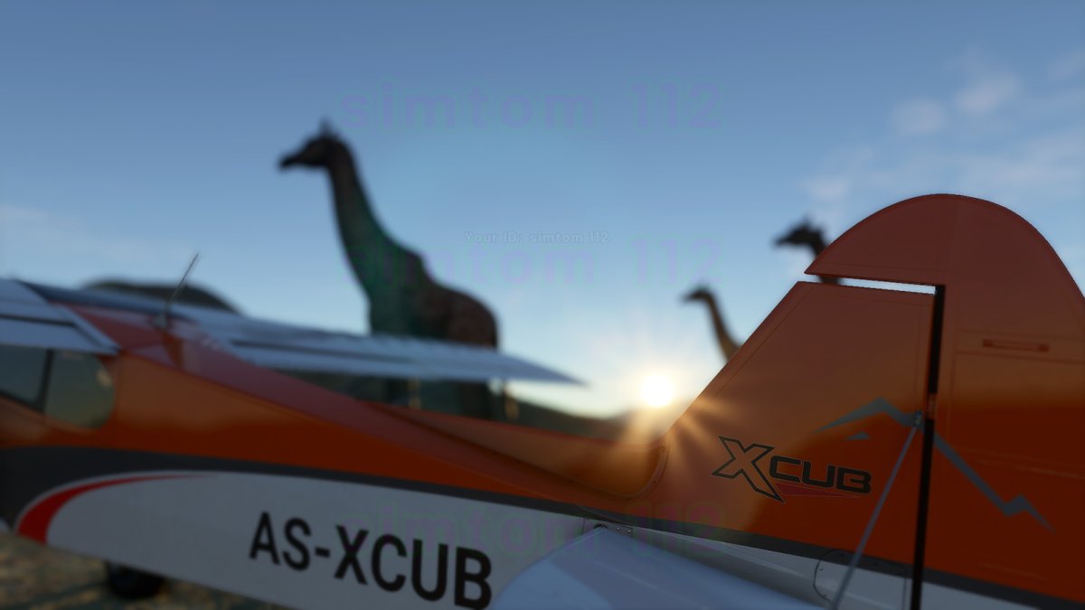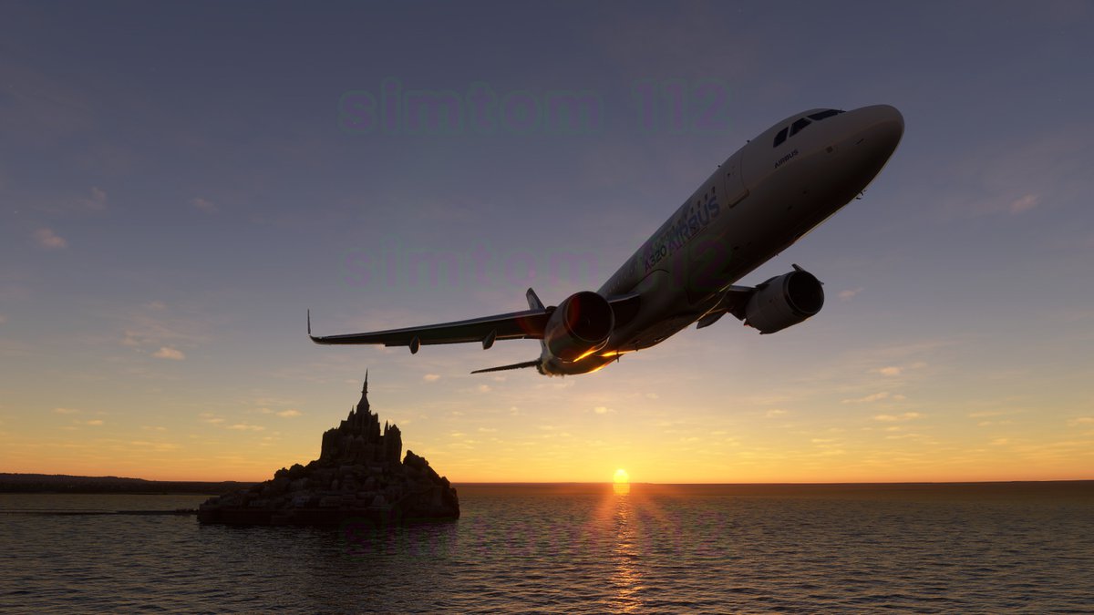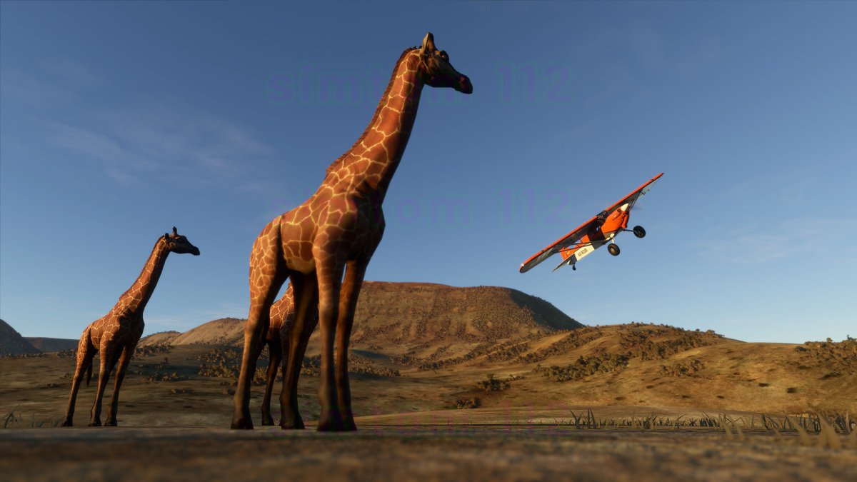 Во время виртуальных съемок SimTom112 побывал в Африке — ему удалось приземлиться прямо рядом со стадом жирафов, обладающих идентичной анимацией — и, кажется, пролетел над Францией. Здесь заметен остров, очень напоминающий Мон-Сен-Мишель.