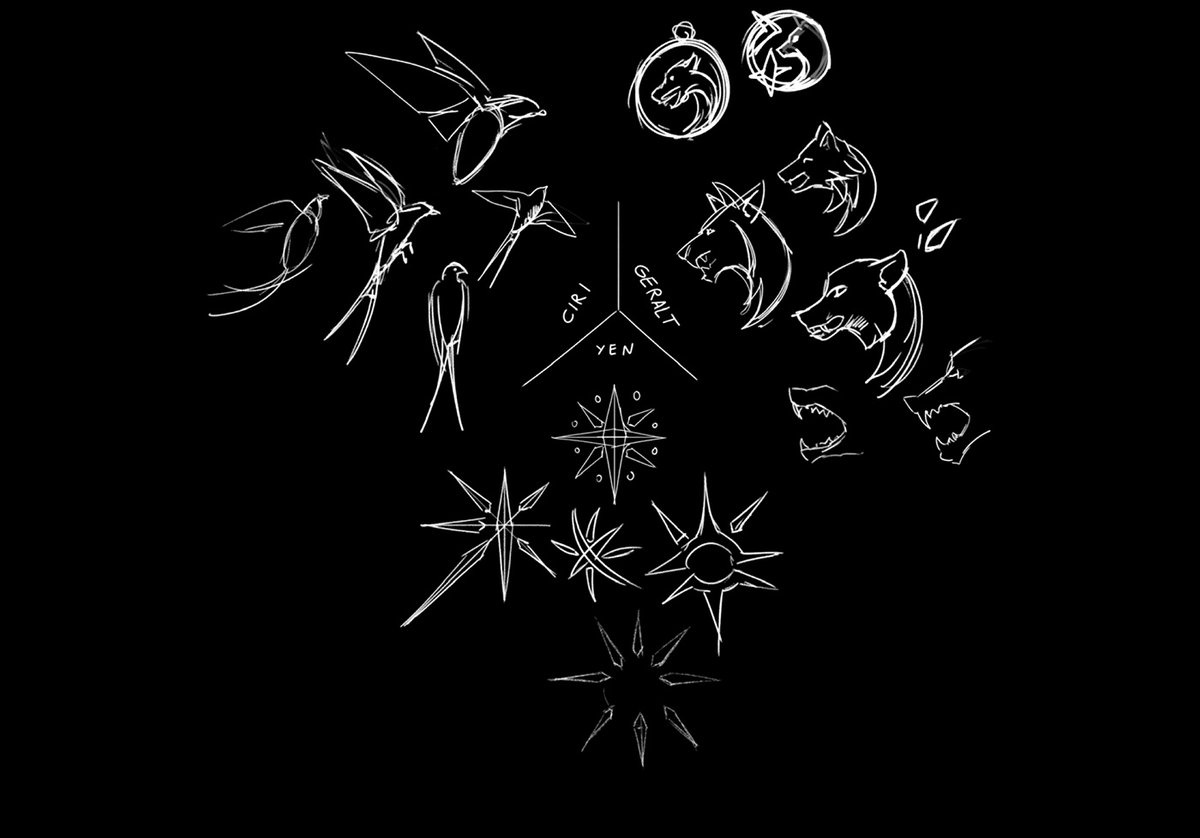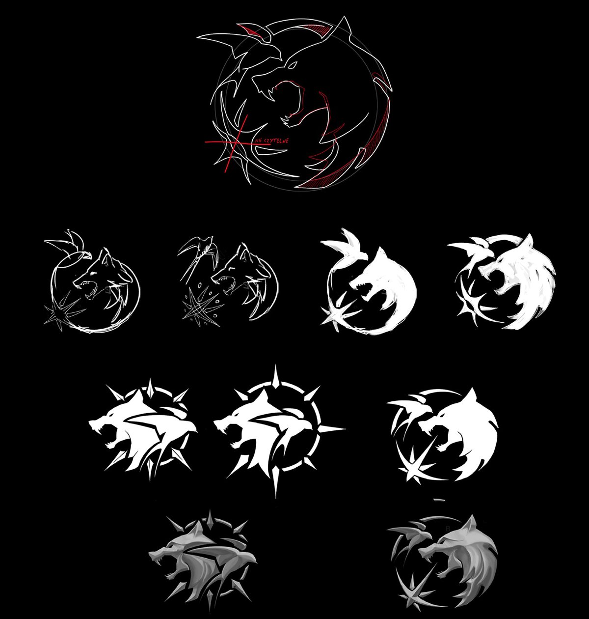 А вот так выглядели предварительные версии логотипов отдельных серий «Ведьмака», созданные художниками Platige Image. Здесь хорошо видно, что древо начало прорастать из меча не сразу, а дракон в какой-то момент напоминал логотип Skyrim.