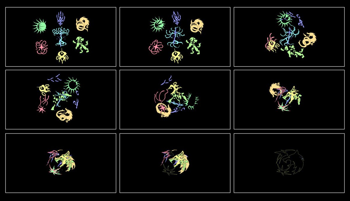 Над трансформацией дизайнеры студии работали в последнюю очередь. Команда Михала подготовила ряд раскадровок, приблизительно показывающих, как будут меняться логотипы серий и из фрагментов каких символов будет состоять финальный логотип.