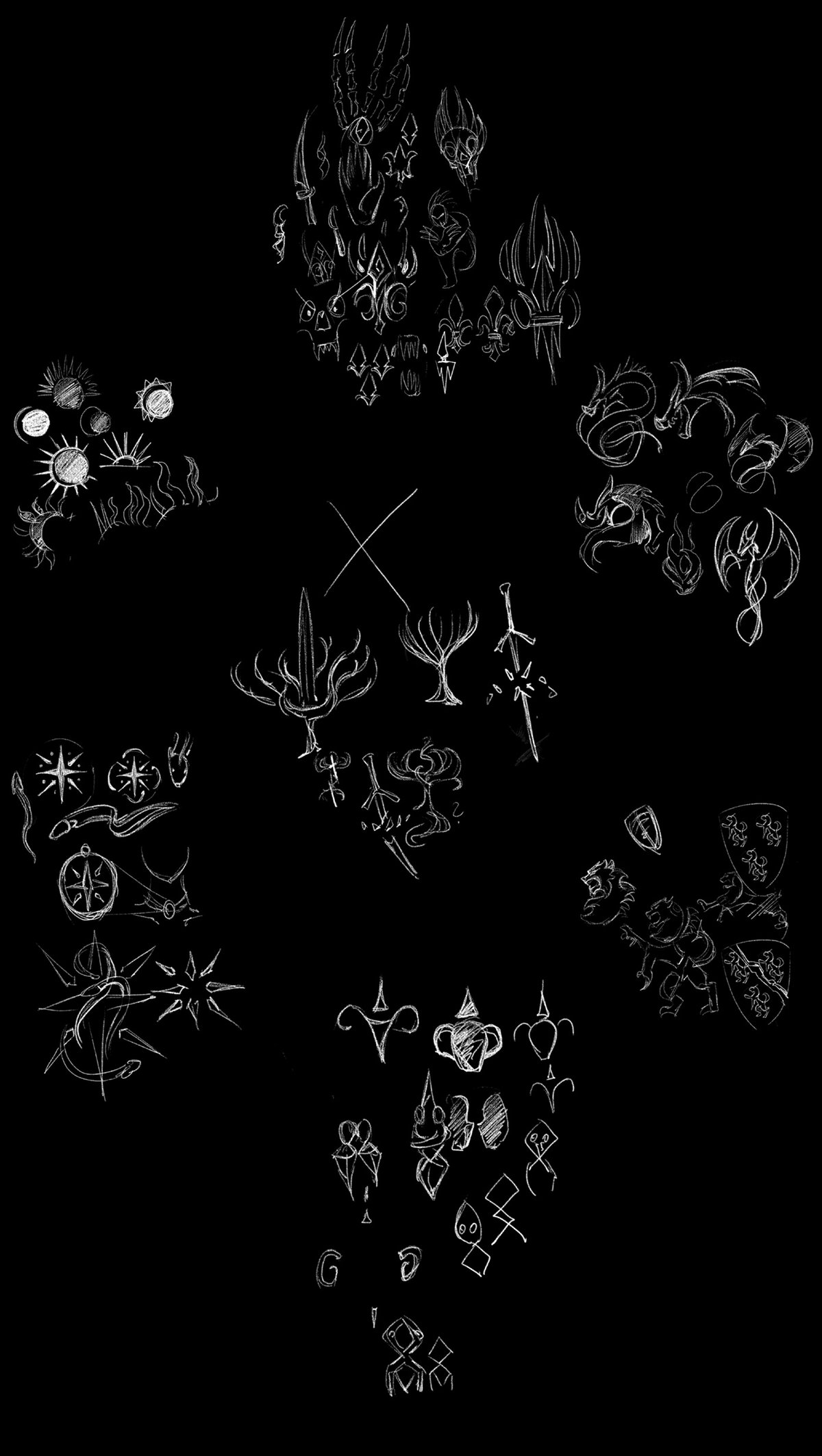 Предполагалось, что в конце вступительного ролика будут появляться символы персонажей: один мог быть выбит на камне, другой отпечатывался на сургуче. Продюсеры решили упростить эту идею, оставив только сами символы и объединив их вместе.