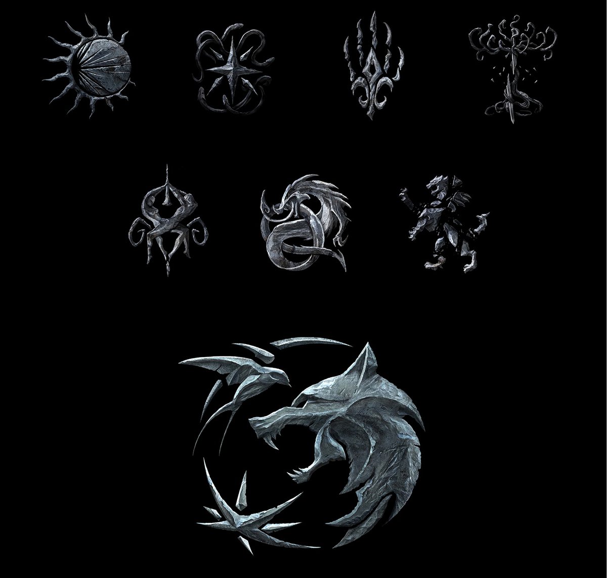 Символы волка, обсидиановой звезды и ласточки выглядят грубо, но в то же время лаконично. У них есть еще одно, не самое очевидное преимущество: такой дизайн, по словам Михала, отсылает к обложкам первых польских изданий книг о ведьмаке.
