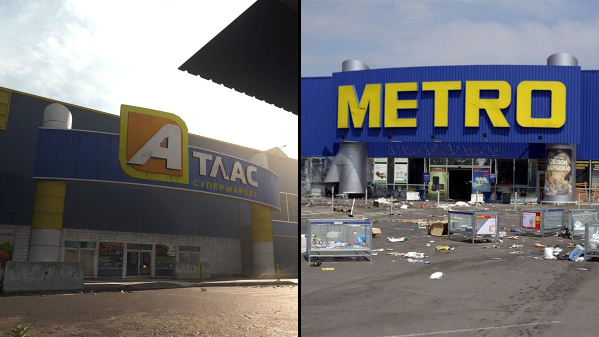 Еще одно здание Донецка, которое теперь можно увидеть только в игре. Реальный супермаркет Metro, которым вдохновлялись разработчики, был опустошен и снесен.