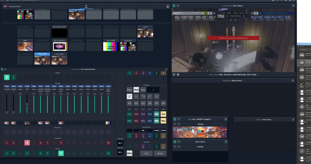 Сидя у себя дома, сотрудники виртуальной студии могут смотреть прямые трансляции геймплея с нескольких виртуальных камер, одновременно следя за тем, что говорят ведущие, и планируя выпуск в эфир нового контента.