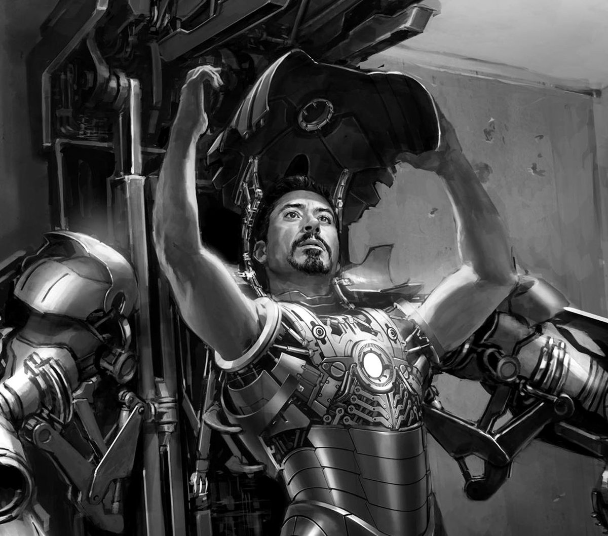 Оказалось, что у Тони Старка могла появиться другая система надевания костюма — на концепте она выглядит не так футуристично, как устройство, изображенное в фильме. Дуговой реактор из первого фильма тоже мог оказаться иным.